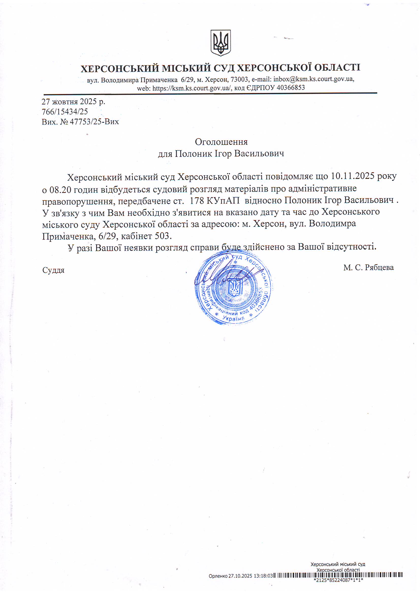 Оголошення про виклик особи в суд та повідомлення про судове рішення