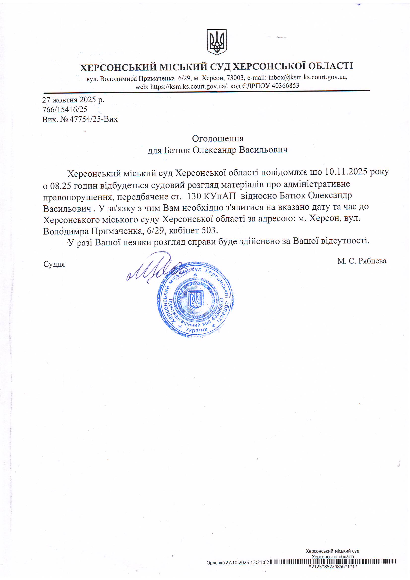 ОГОЛОШЕННЯ ПРО ВИКЛИК ДО СУДУ