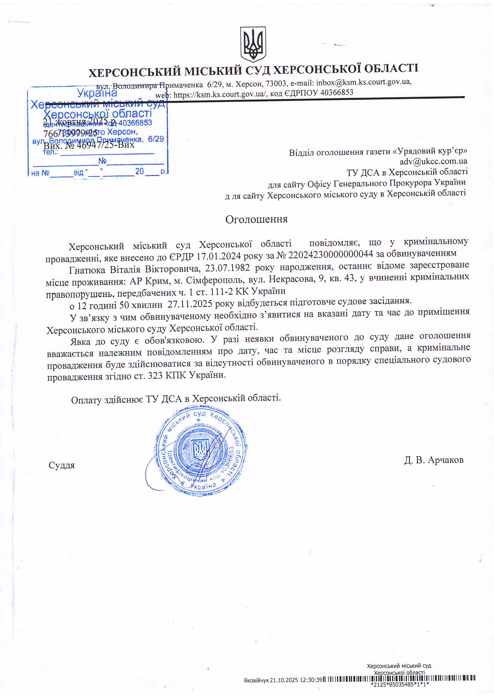 Інформація про місцезнаходження Херсонського міського суду Херсонської області