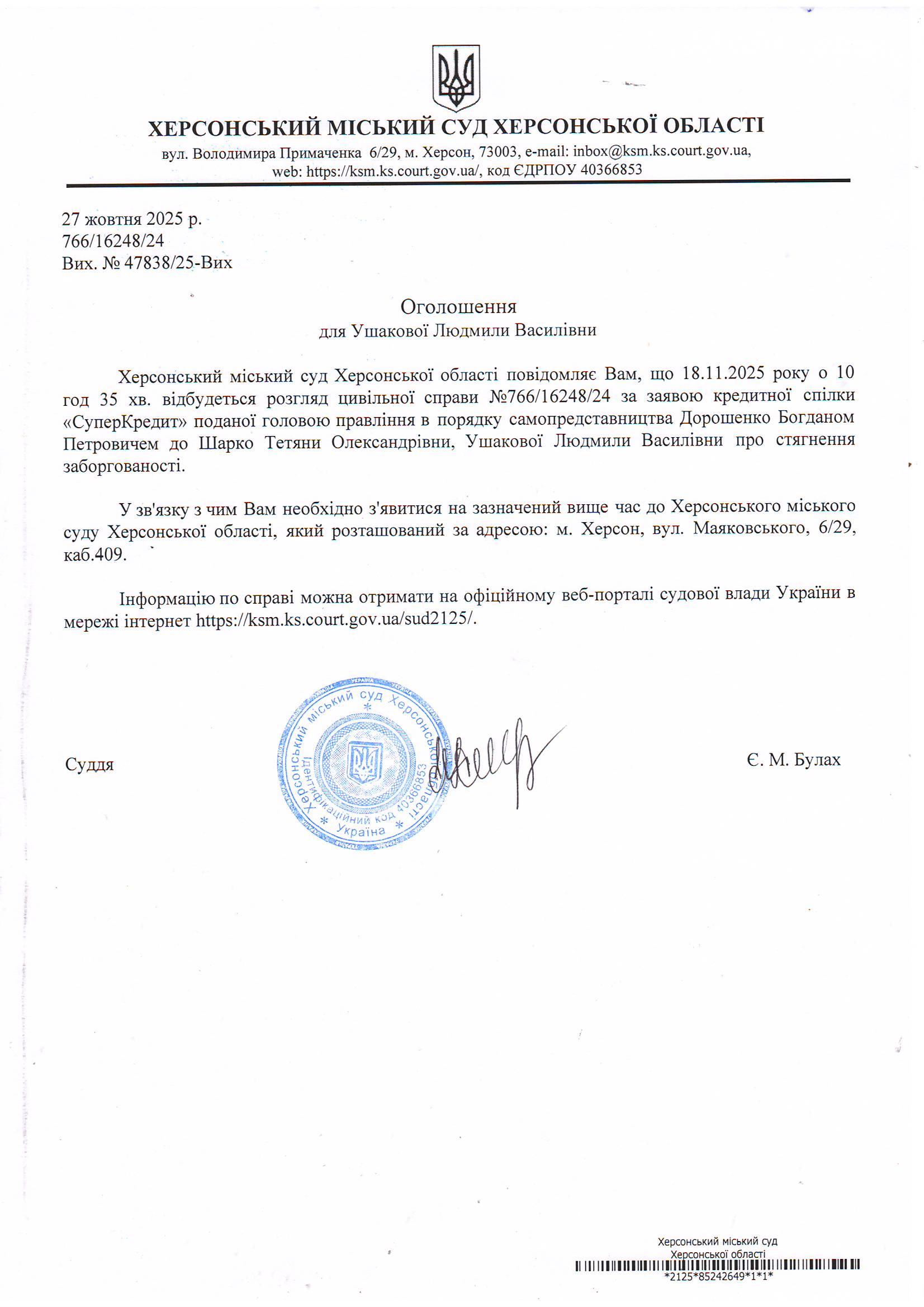 ОГОЛОШЕННЯ ПРО ВИКЛИК ДО СУДУ