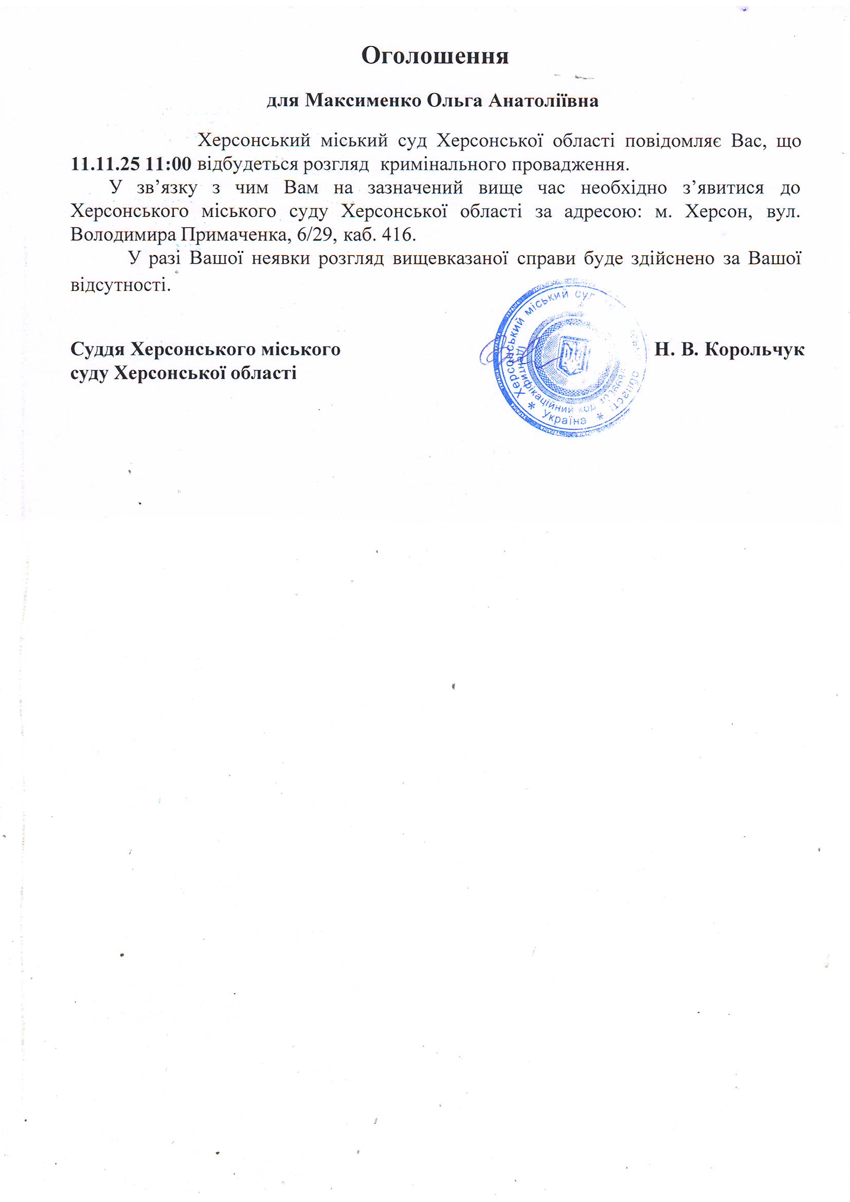 ОГОЛОШЕННЯ ПРО ВИКЛИК ДО СУДУ