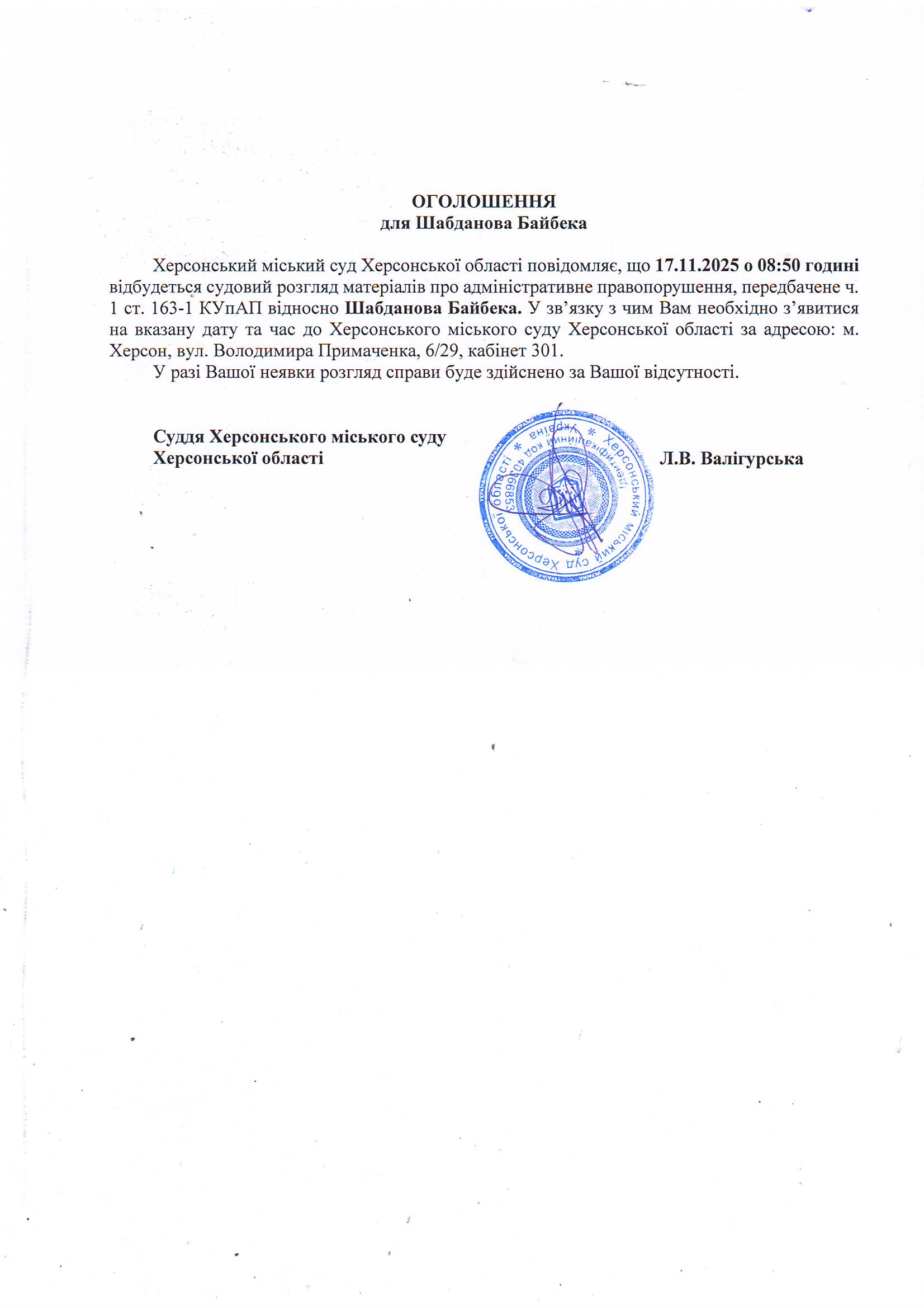 ОГОЛОШЕННЯ ПРО ВИКЛИК ДО СУДУ