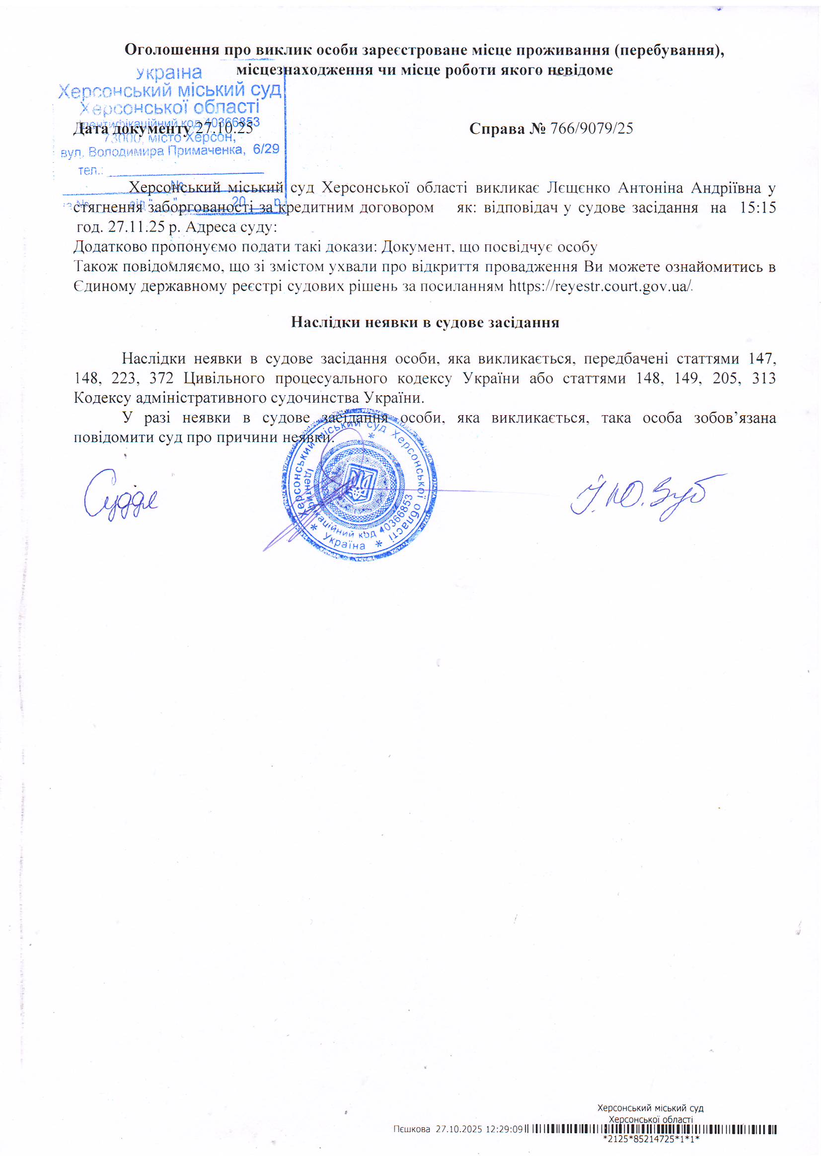 ОГОЛОШЕННЯ ПРО ВИКЛИК ДО СУДУ