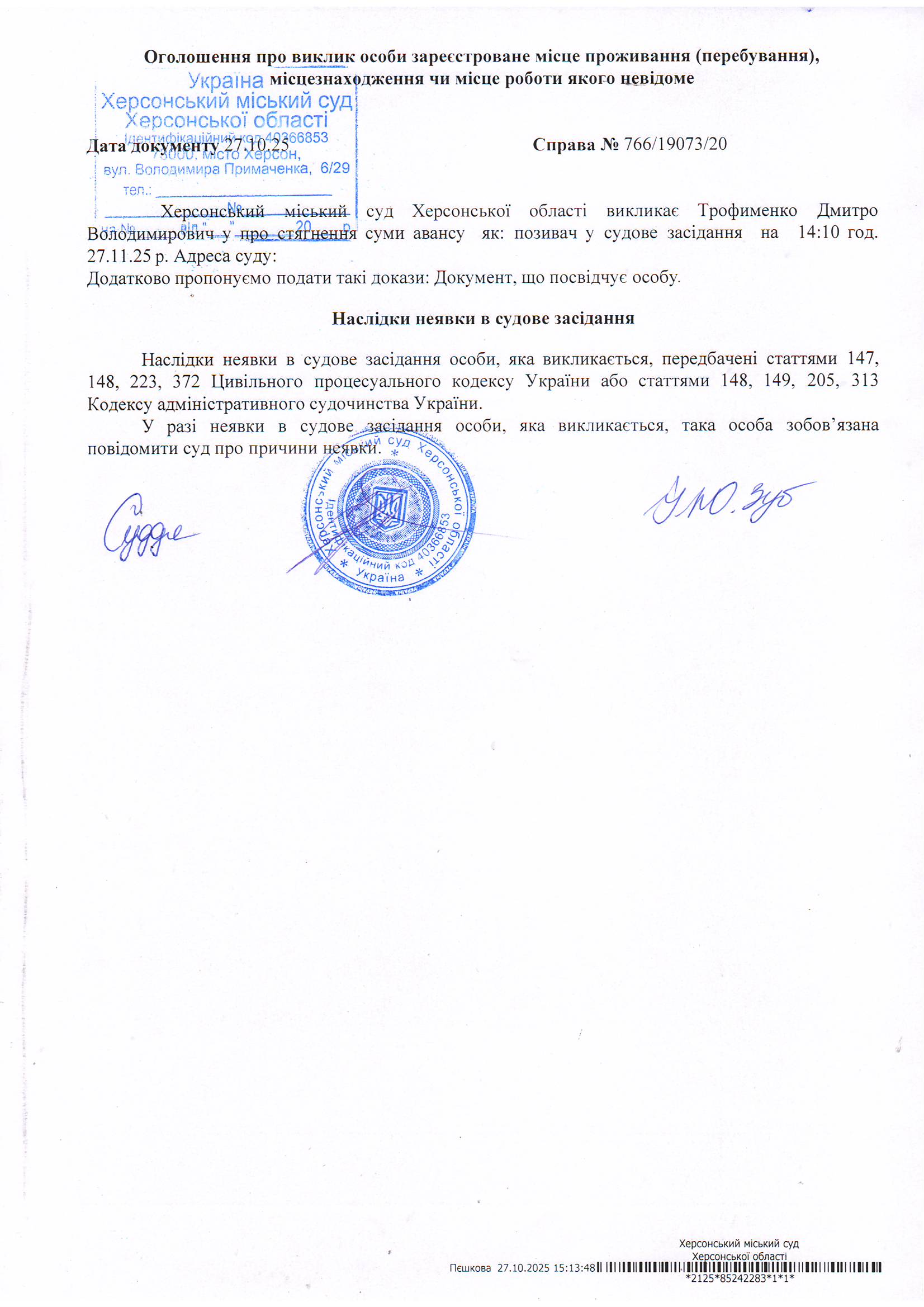 ОГОЛОШЕННЯ ПРО ВИКЛИК ДО СУДУ