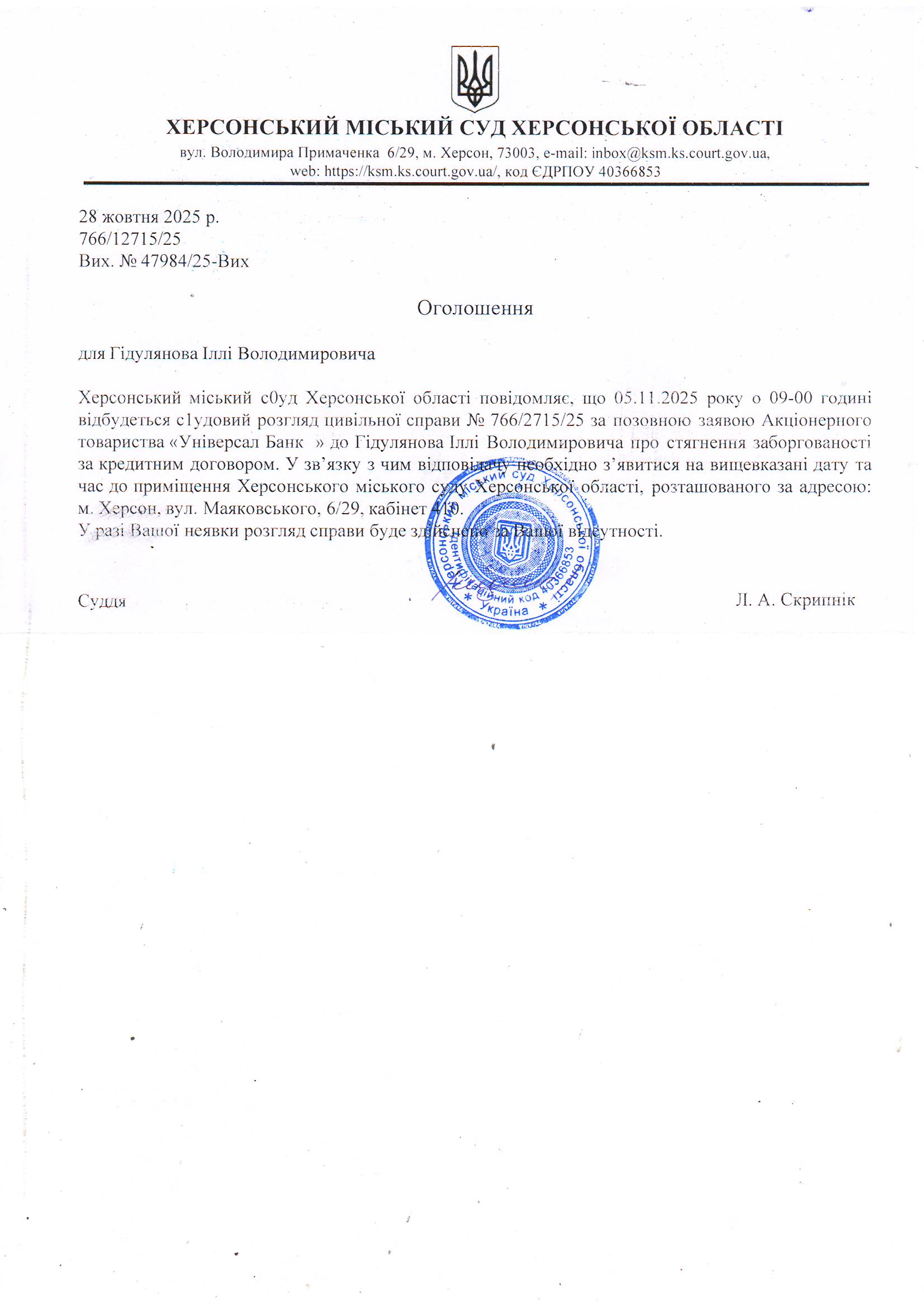 ОГОЛОШЕННЯ ПРО ВИКЛИК ДО СУДУ