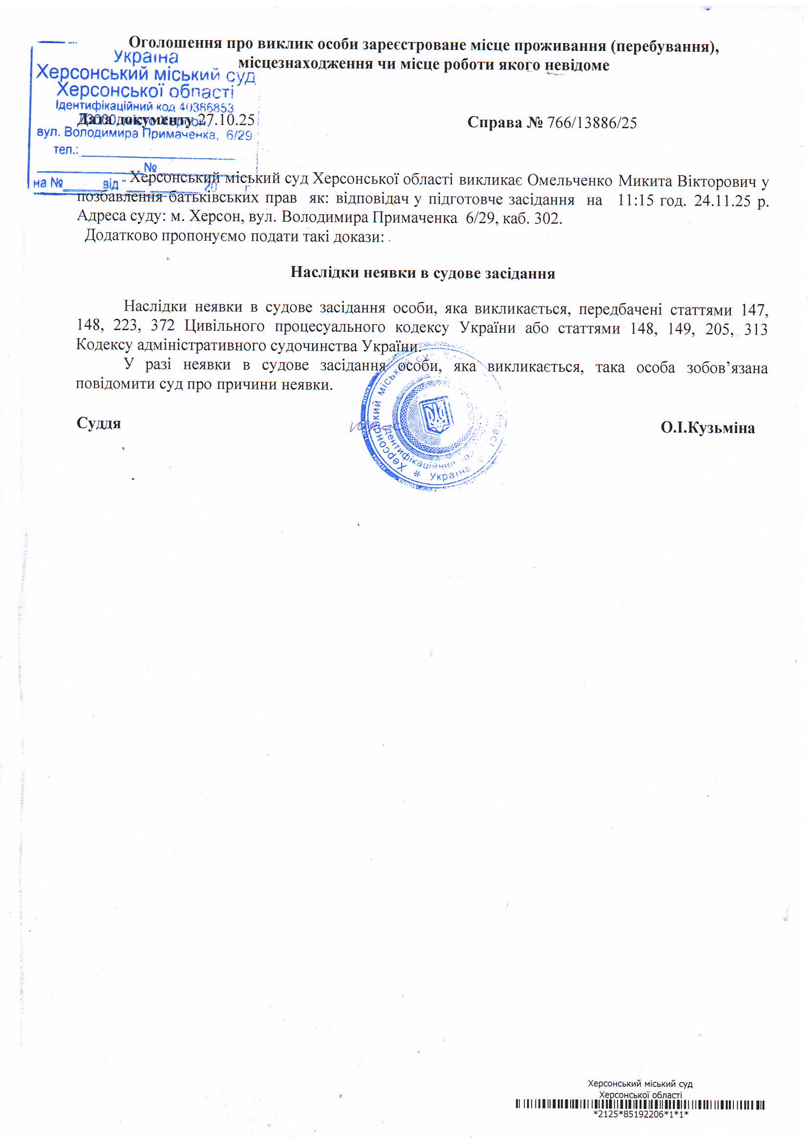 ОГОЛОШЕННЯ ПРО ВИКЛИК ДО СУДУ