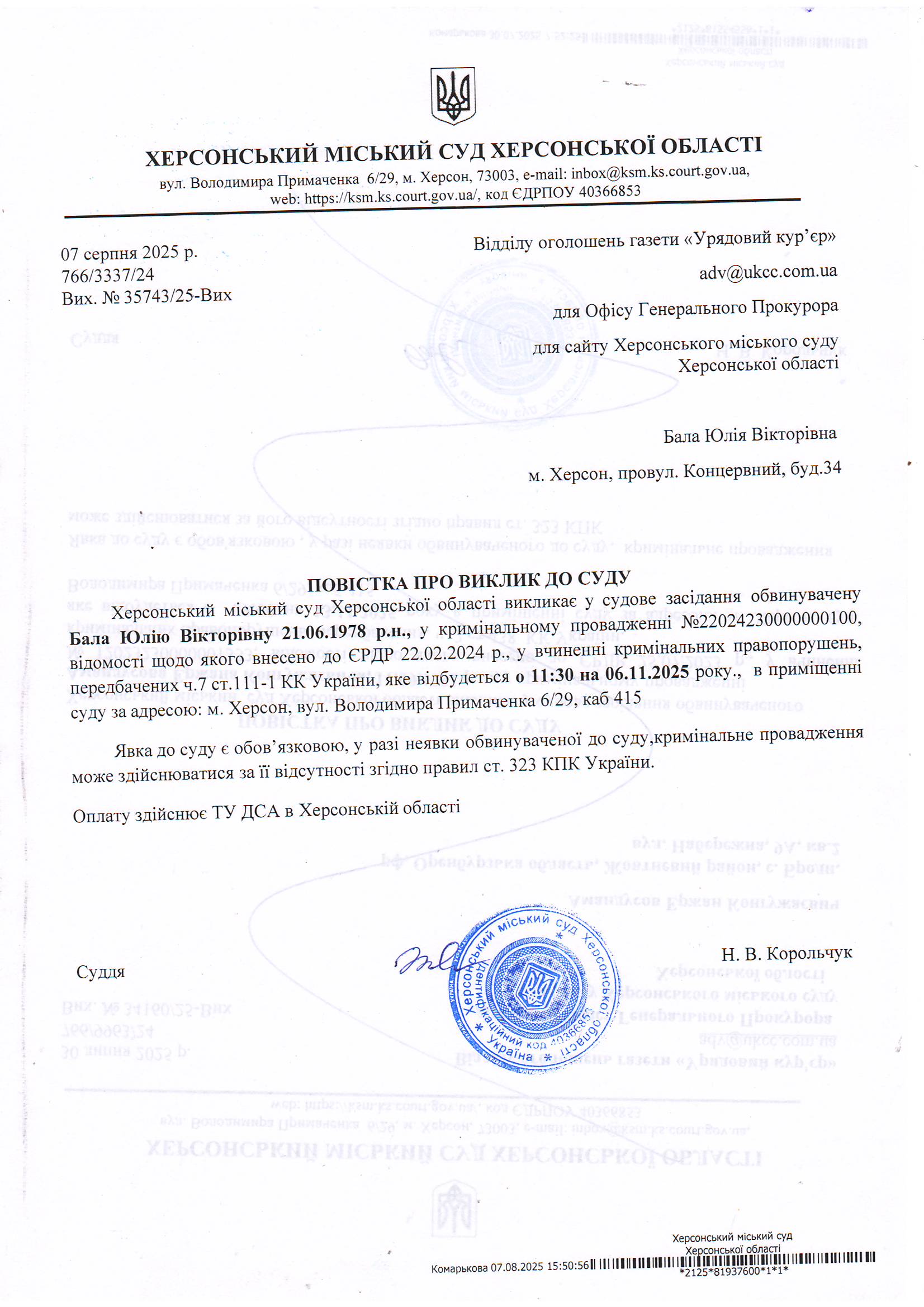ОГОЛОШЕННЯ ПРО ВИКЛИК ДО СУДУ