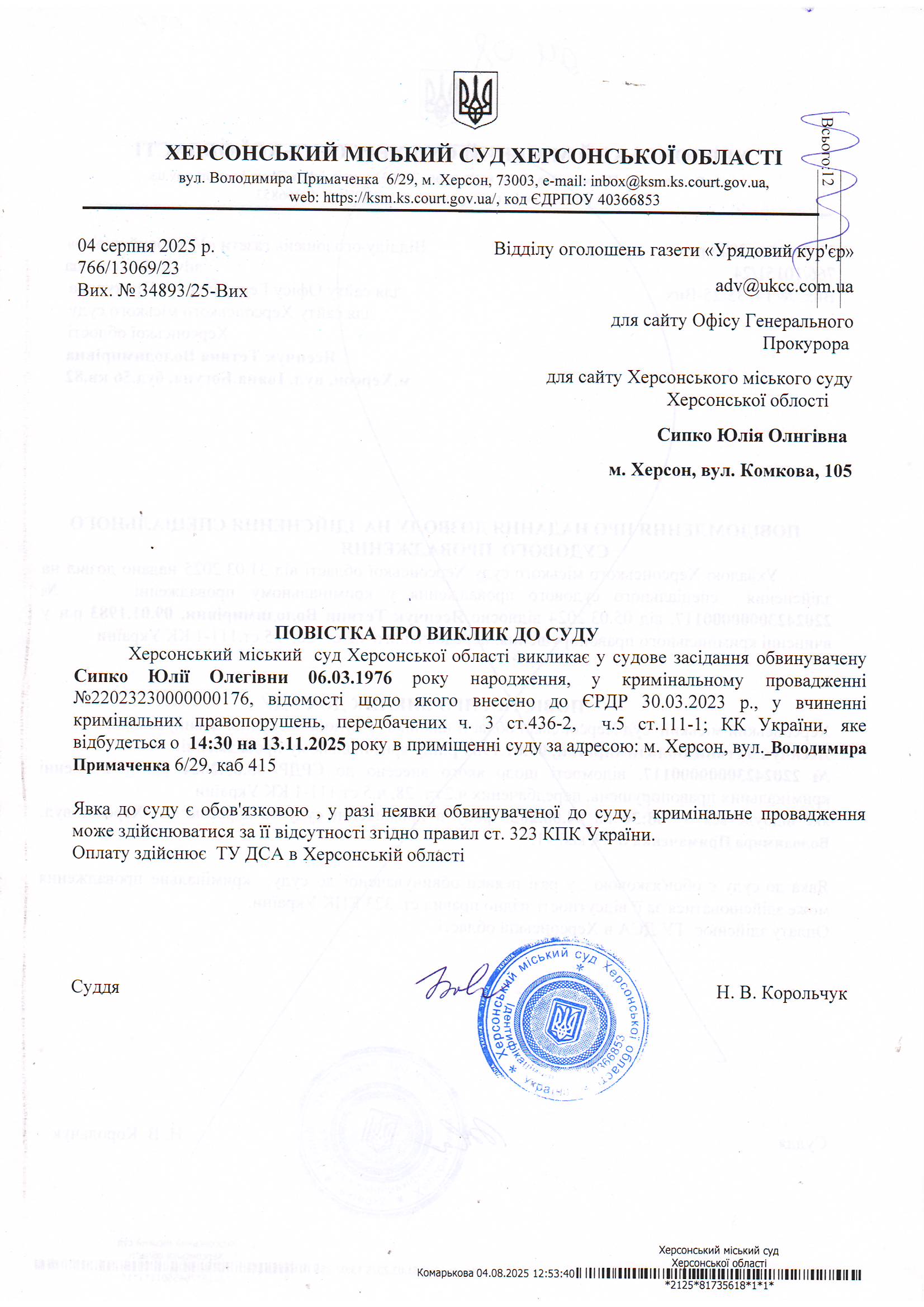 ОГОЛОШЕННЯ ПРО ВИКЛИК ДО СУДУ