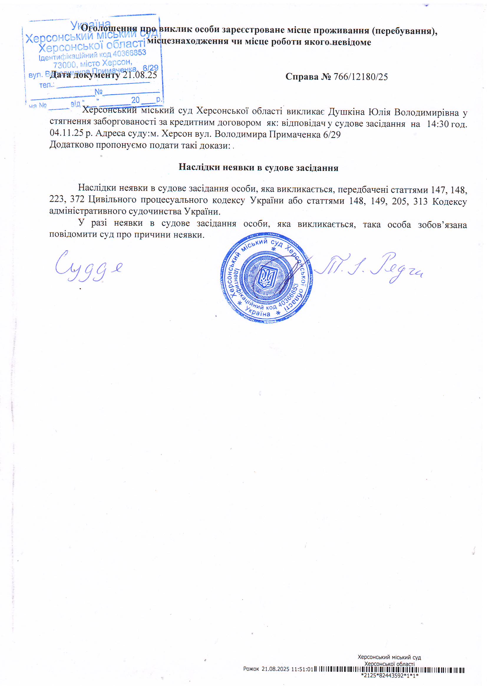 ПОВІДОМЛЕННЯ ПРО РОЗГЛЯД СПРАВИ БЕЗ ВИКЛИКУ СТОРІН