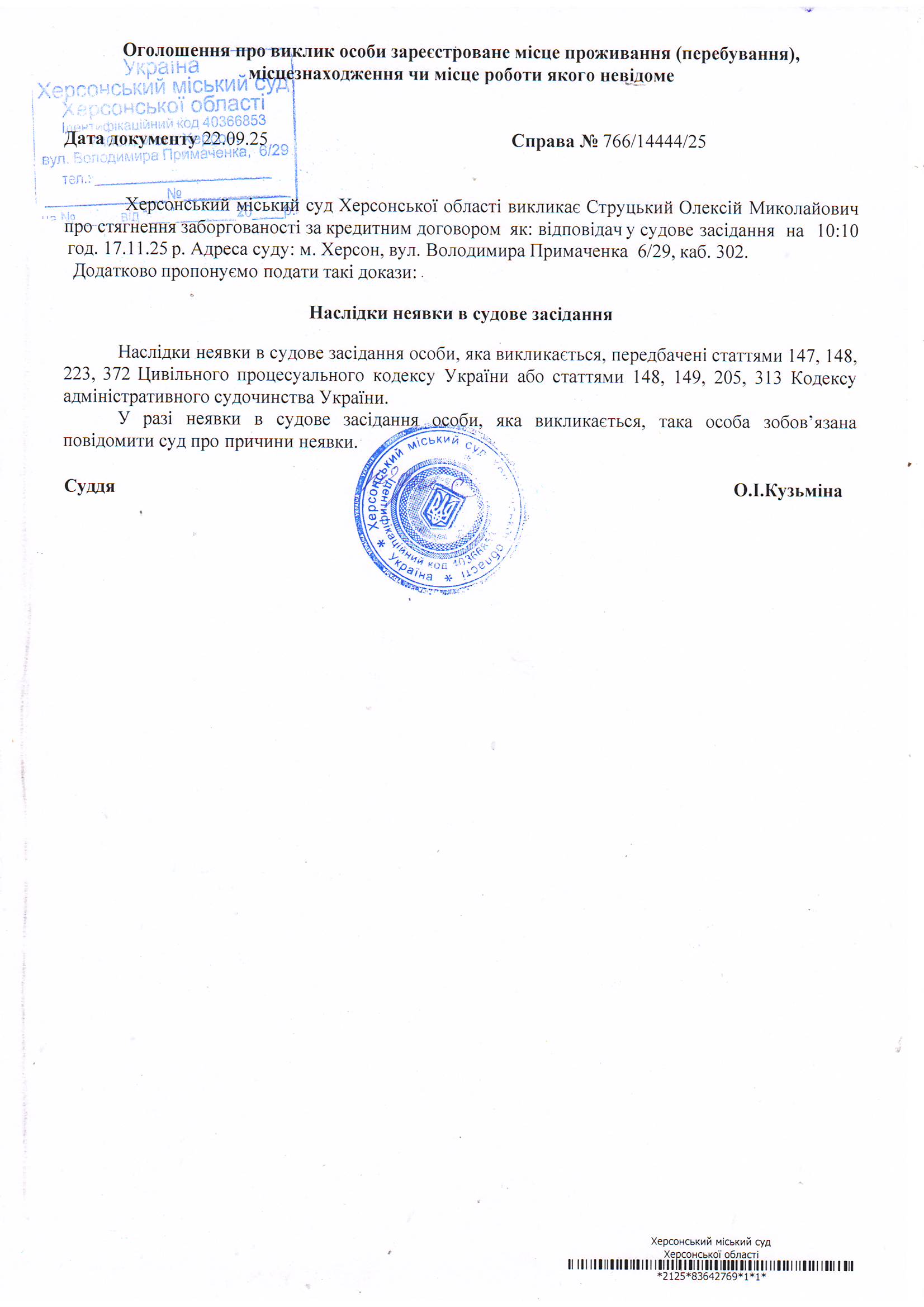 ОГОЛОШЕННЯ ПРО ВИКЛИК ДО СУДУ