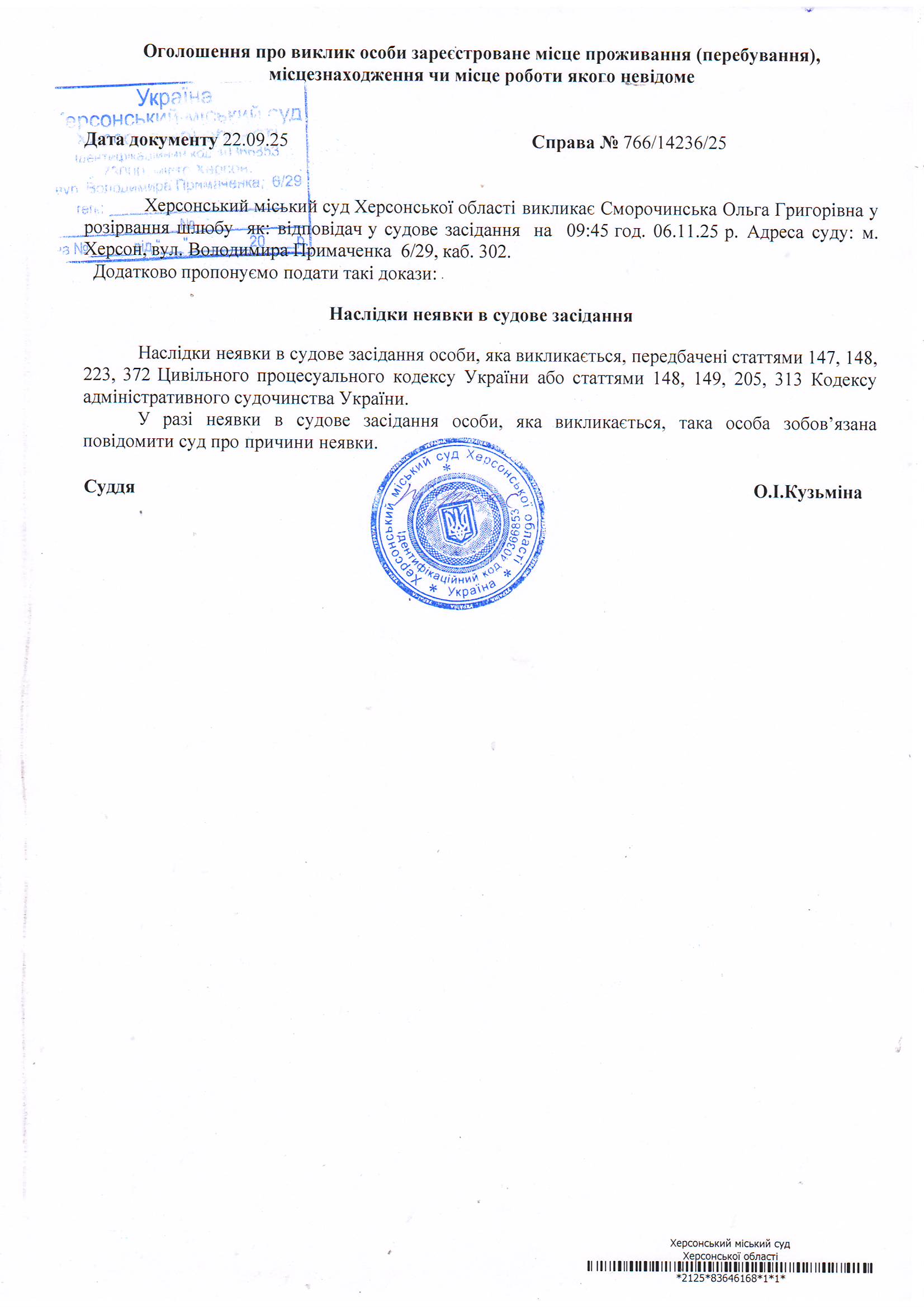 ОГОЛОШЕННЯ ПРО ВИКЛИК ДО СУДУ