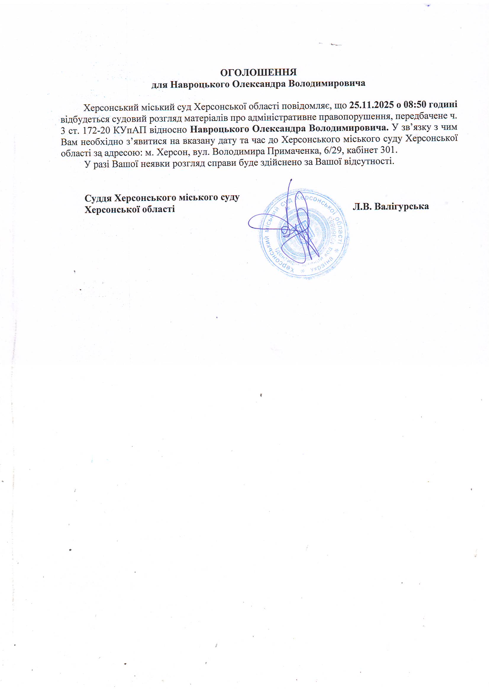 Оголошення для Навроцького Олександра Володимировича