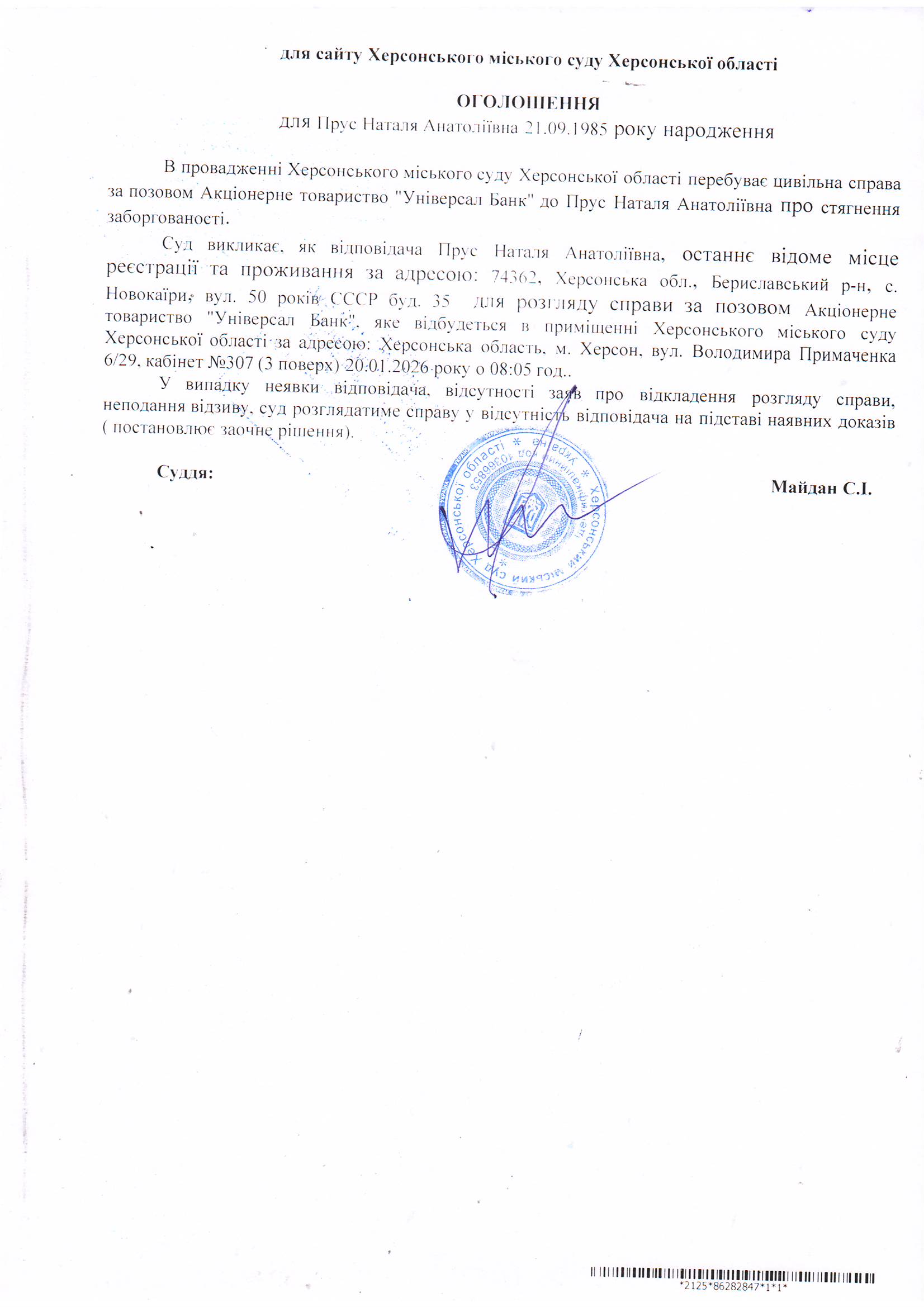 ОГОЛОШЕННЯ ПРО ВИКЛИК ДО СУДУ