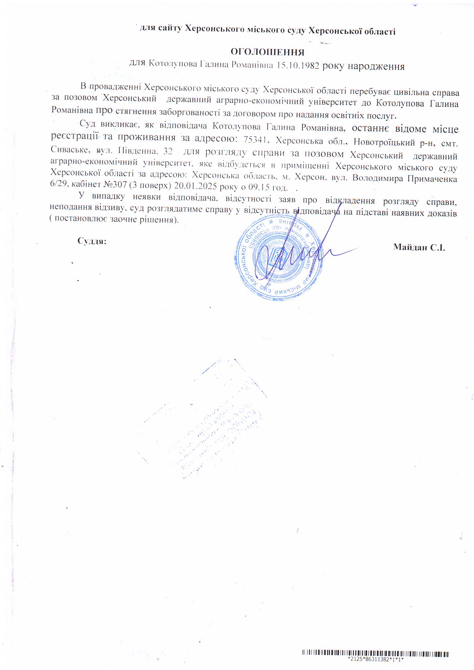 ОГОЛОШЕННЯ ПРО ВИКЛИК ДО СУДУ