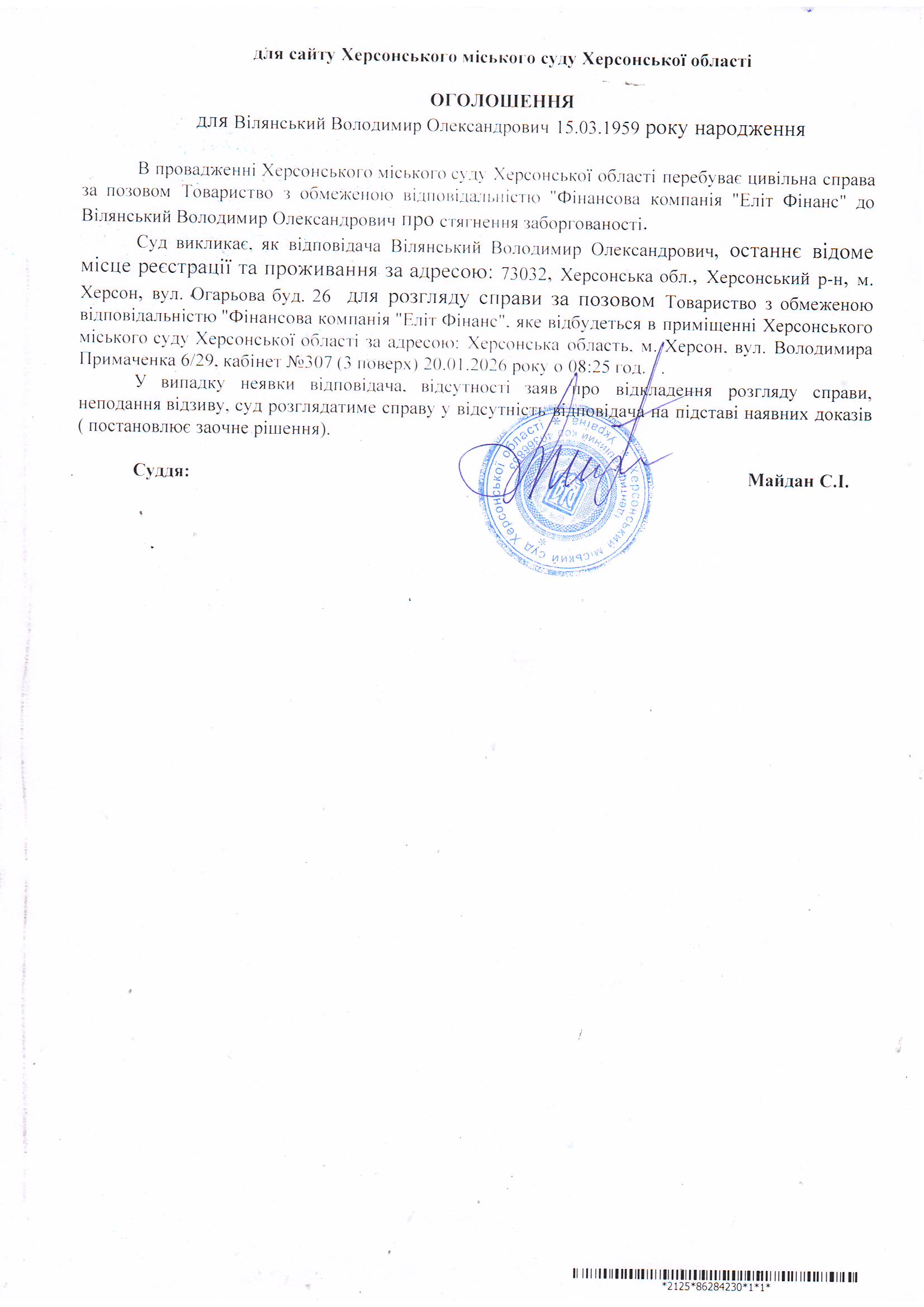 ОГОЛОШЕННЯ ПРО ВИКЛИК ДО СУДУ