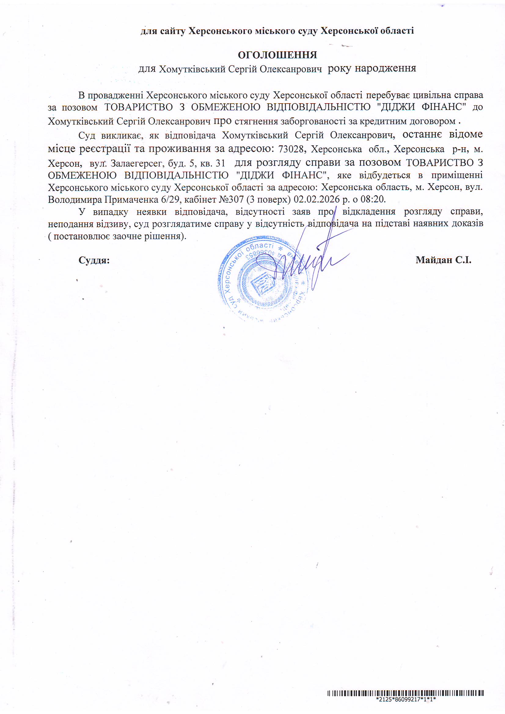 ОГОЛОШЕННЯ ПРО ВИКЛИК ДО СУДУ