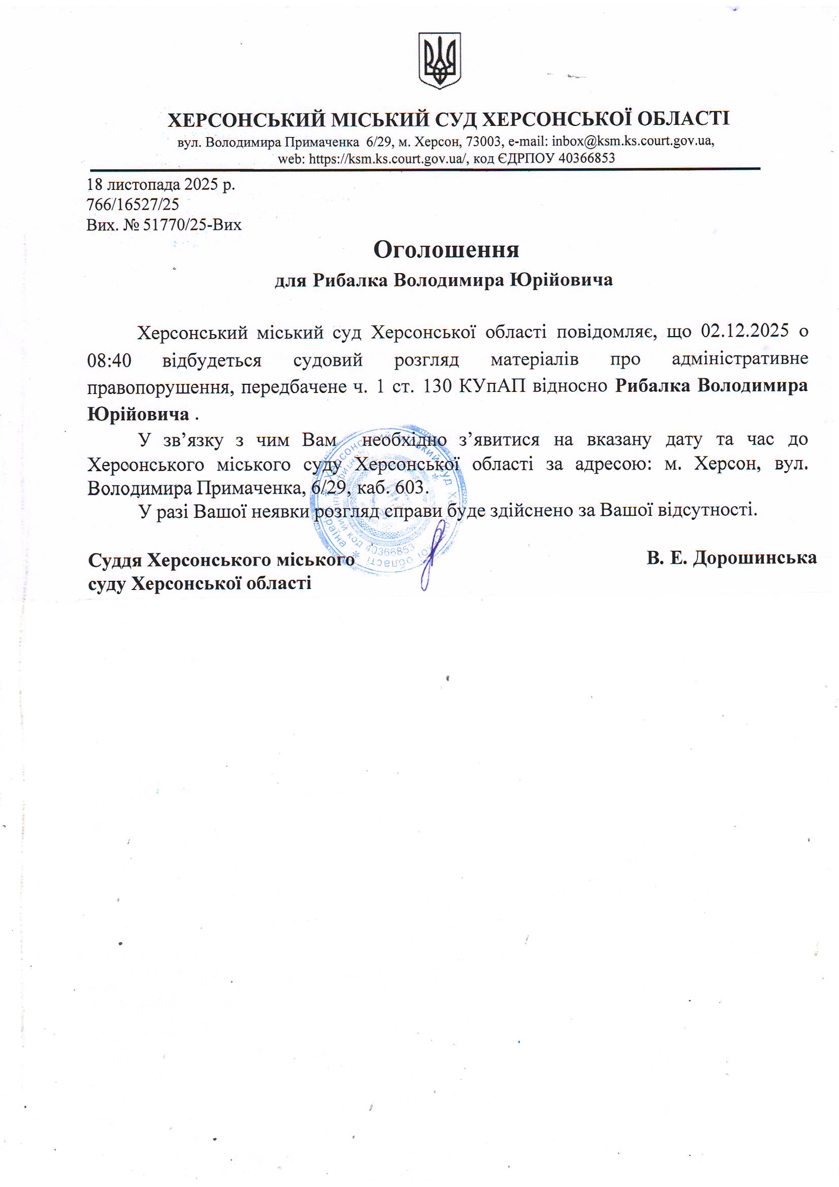 ОГОЛОШЕННЯ ПРО ВИКЛИК ДО СУДУ