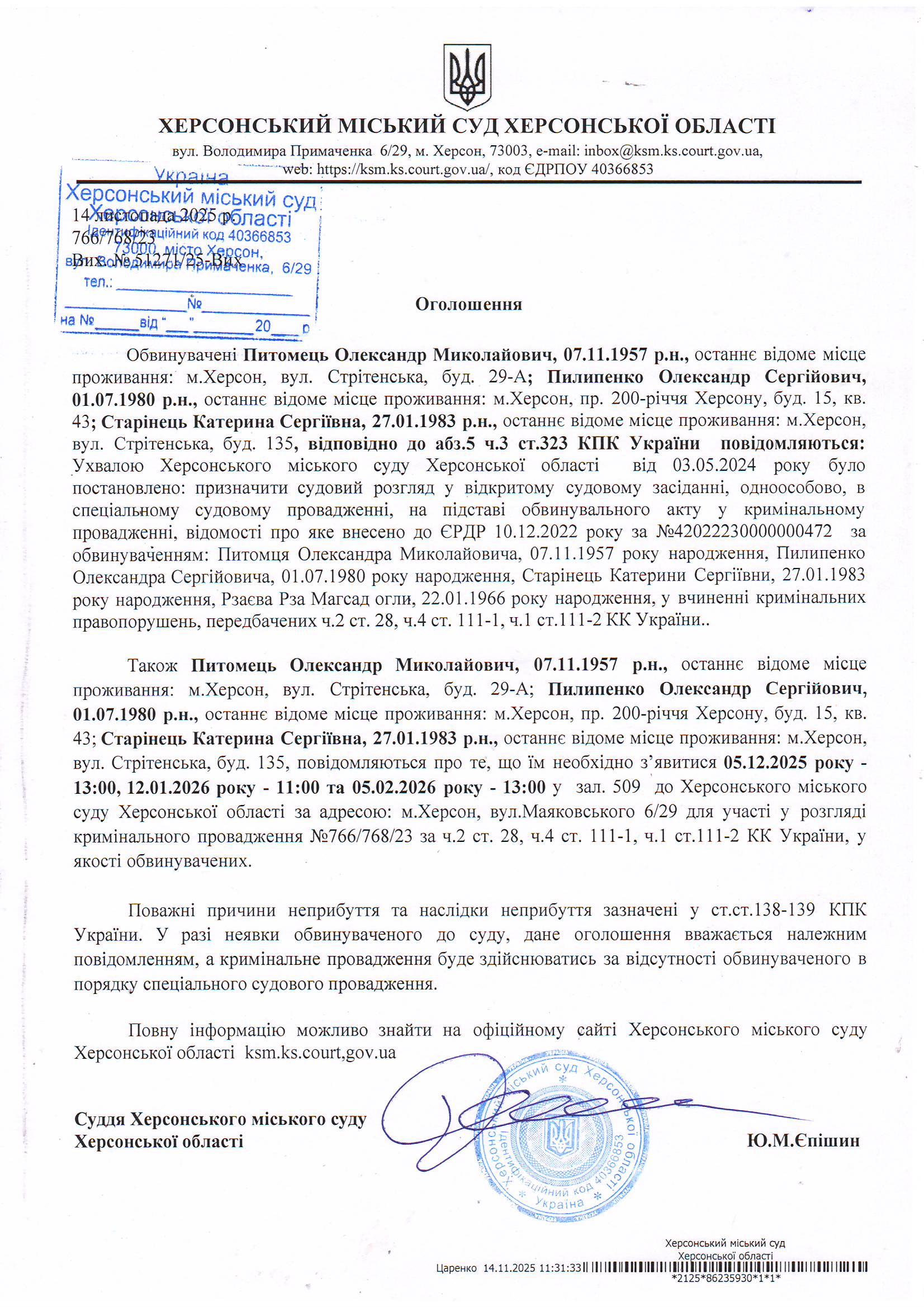 Оголошення про виклик особи в суд та повідомлення про судове рішення