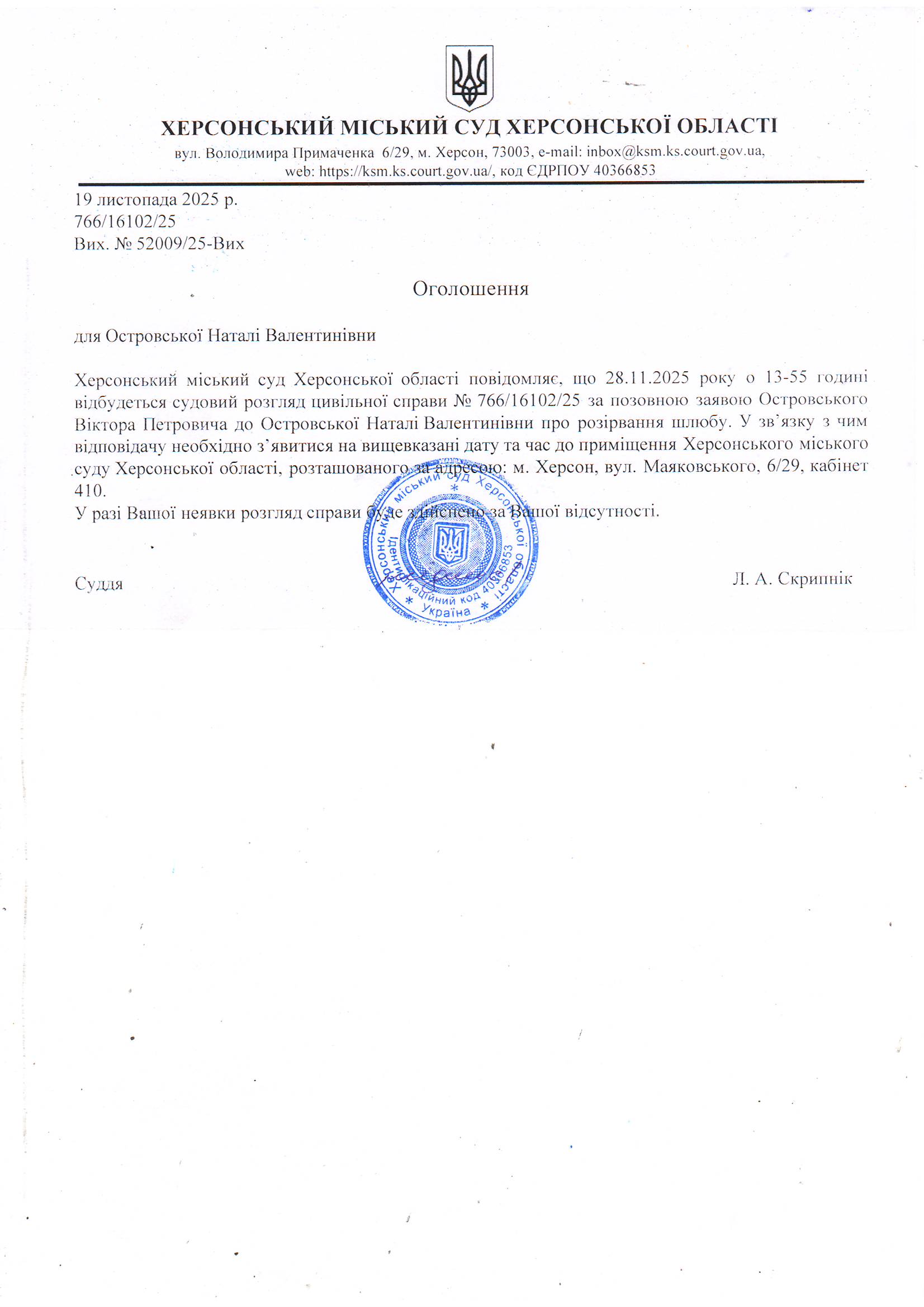 ОГОЛОШЕННЯ ПРО ВИКЛИК ДО СУДУ