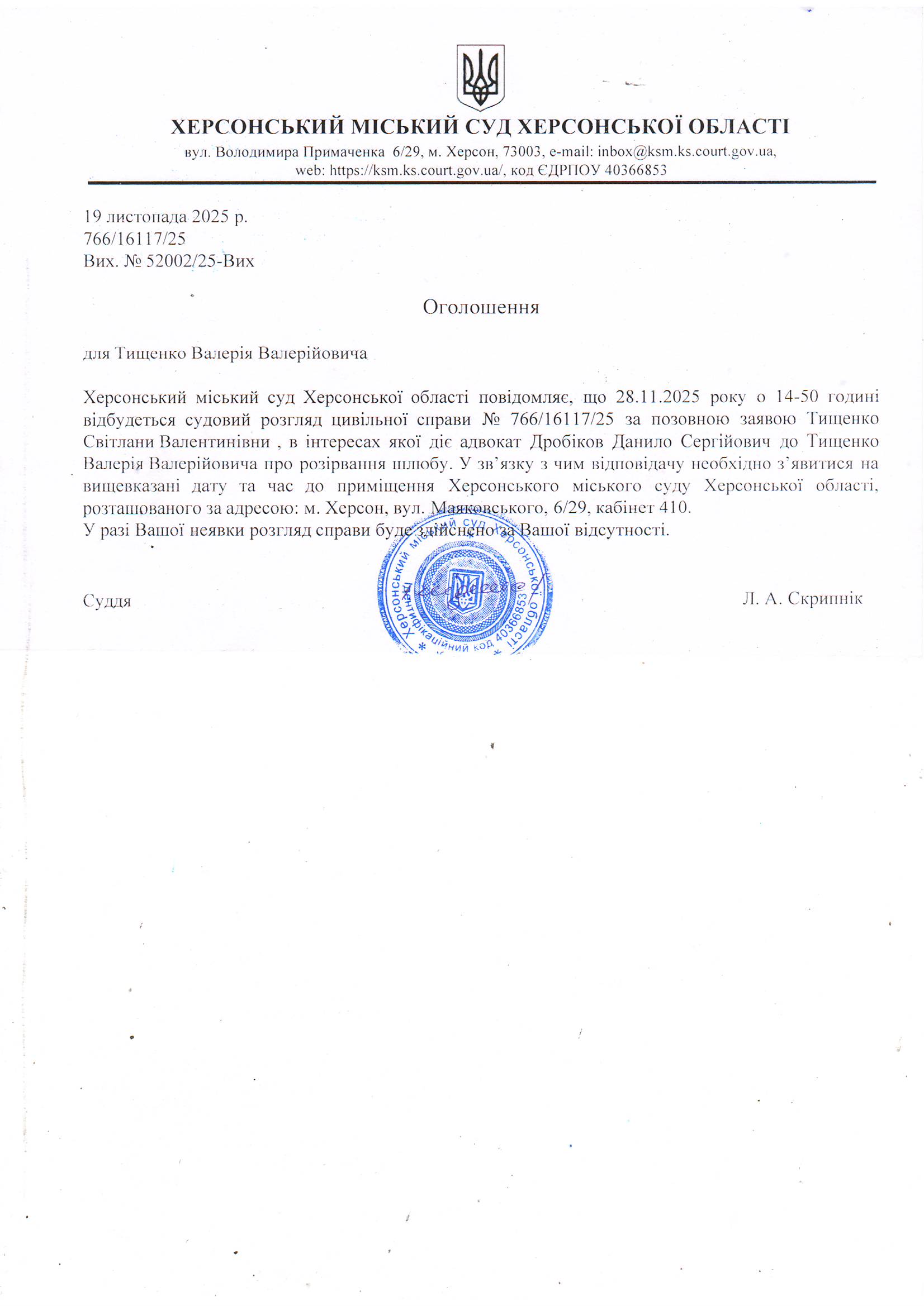 ОГОЛОШЕННЯ ПРО ВИКЛИК ДО СУДУ
