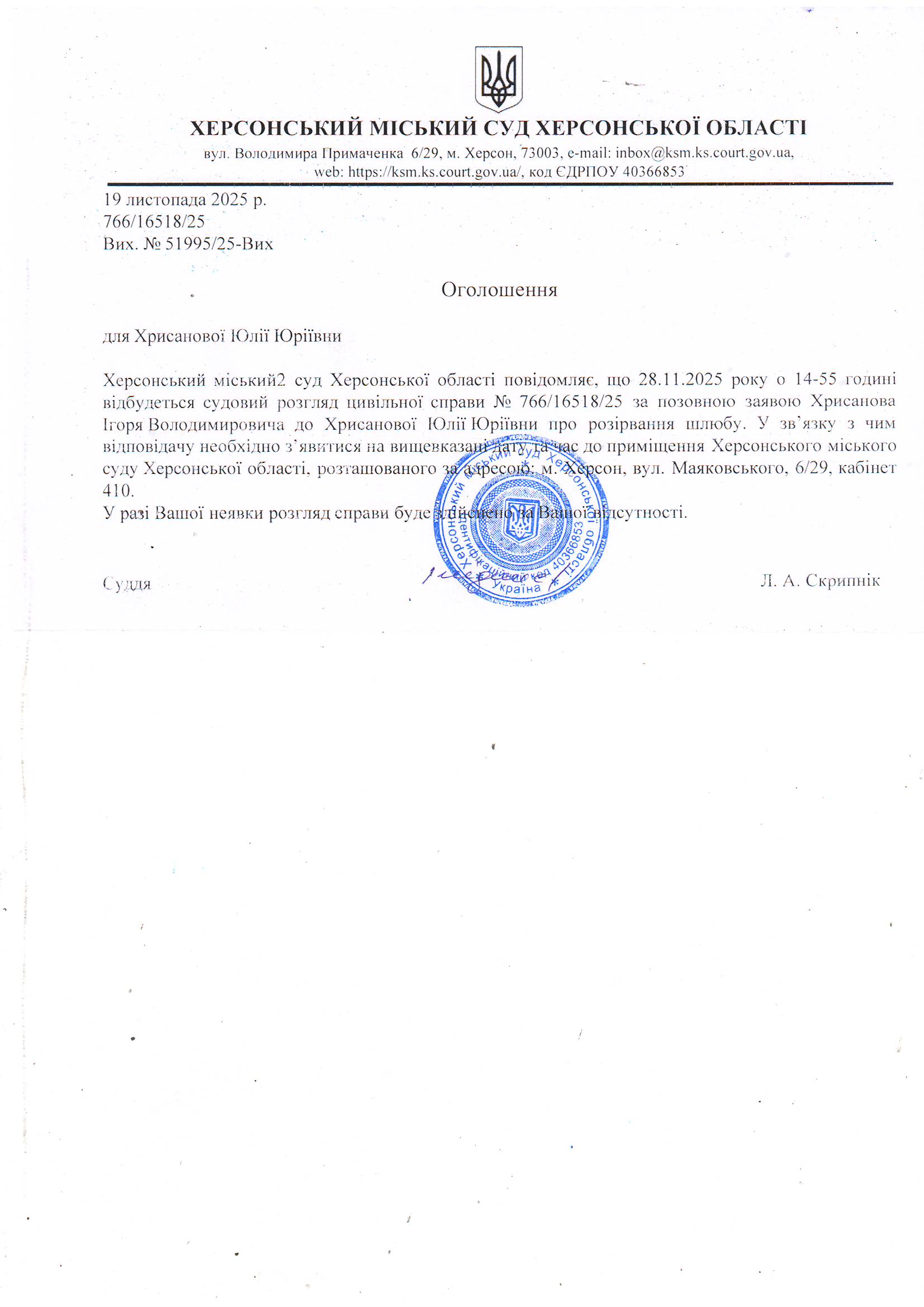 ОГОЛОШЕННЯ ПРО ВИКЛИК ДО СУДУ