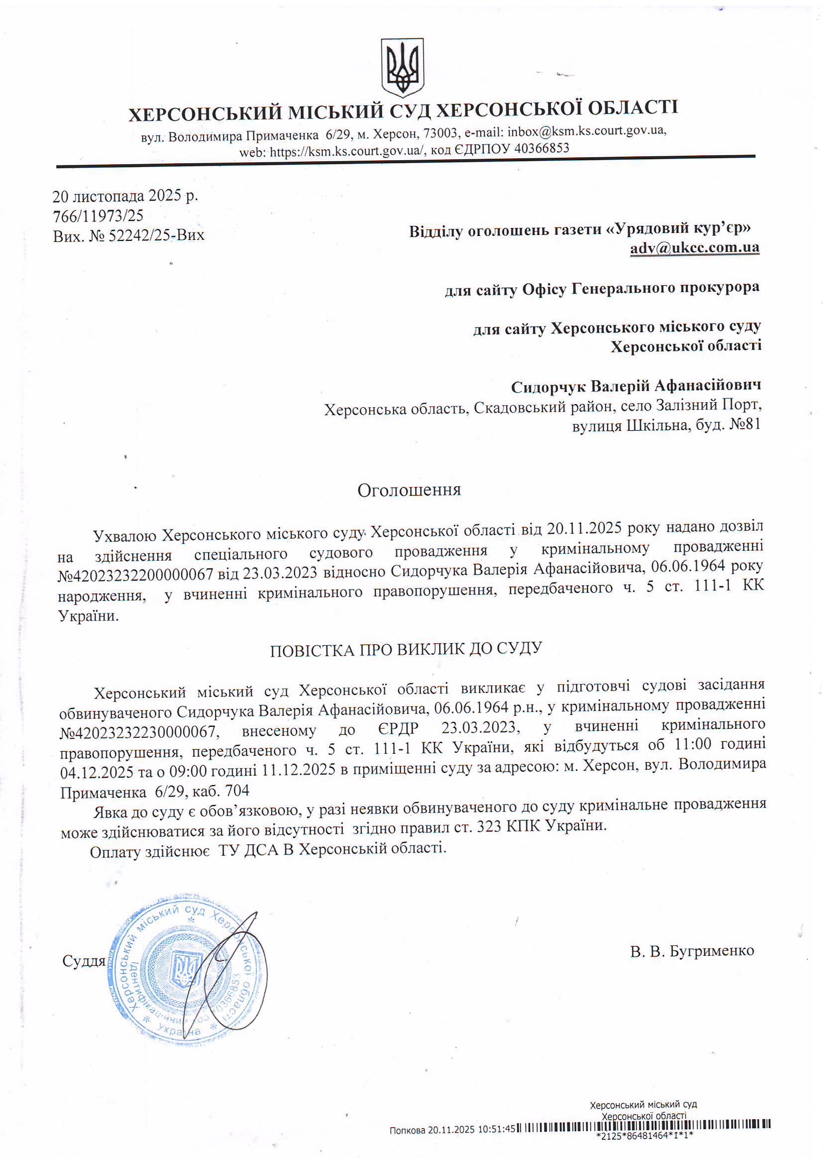 Оголошення про виклик особи в суд та повідомлення про судове рішення