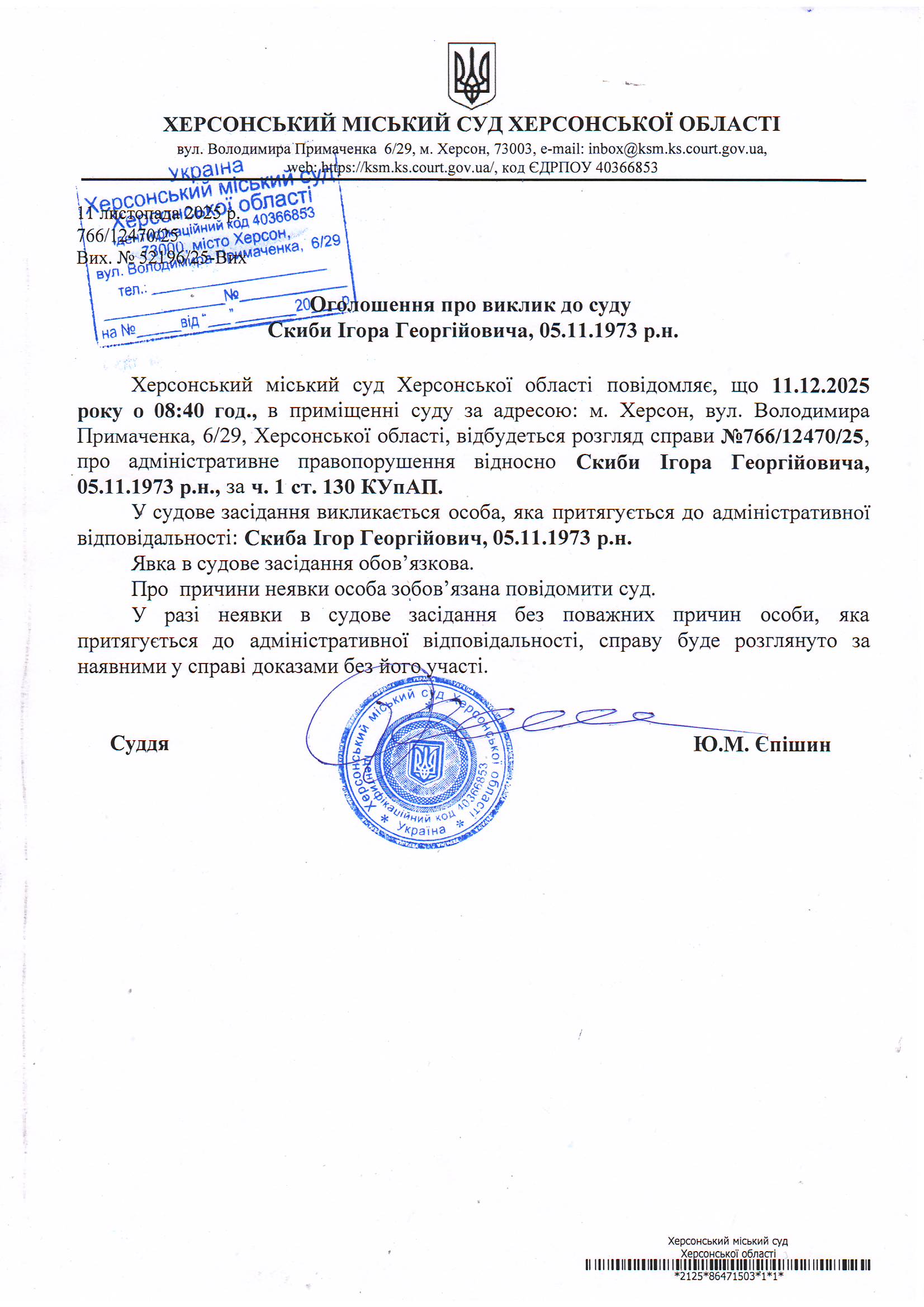 ОГОЛОШЕННЯ ПРО ВИКЛИК ДО СУДУ