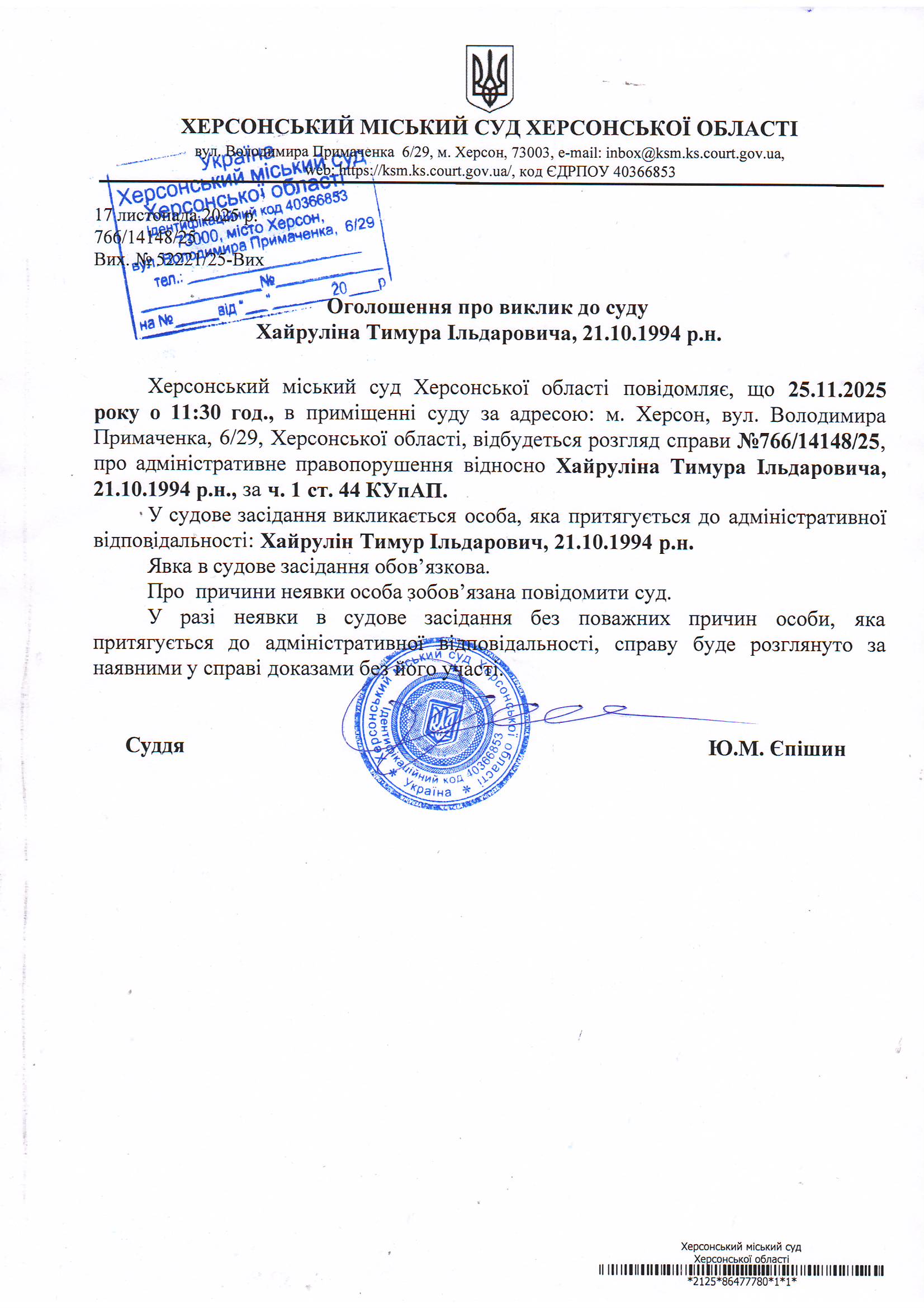 ОГОЛОШЕННЯ ПРО ВИКЛИК ДО СУДУ