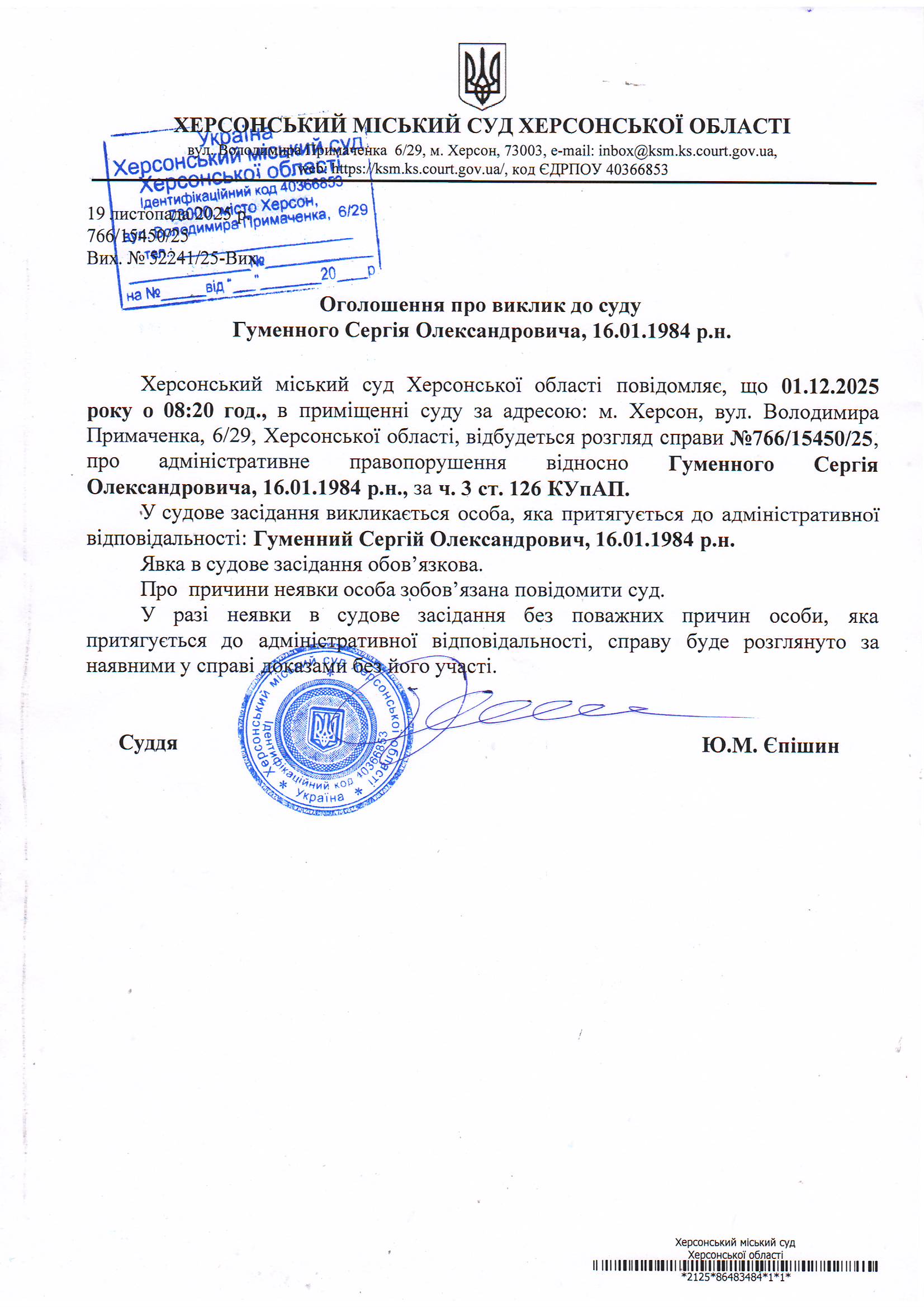ОГОЛОШЕННЯ ПРО ВИКЛИК ДО СУДУ