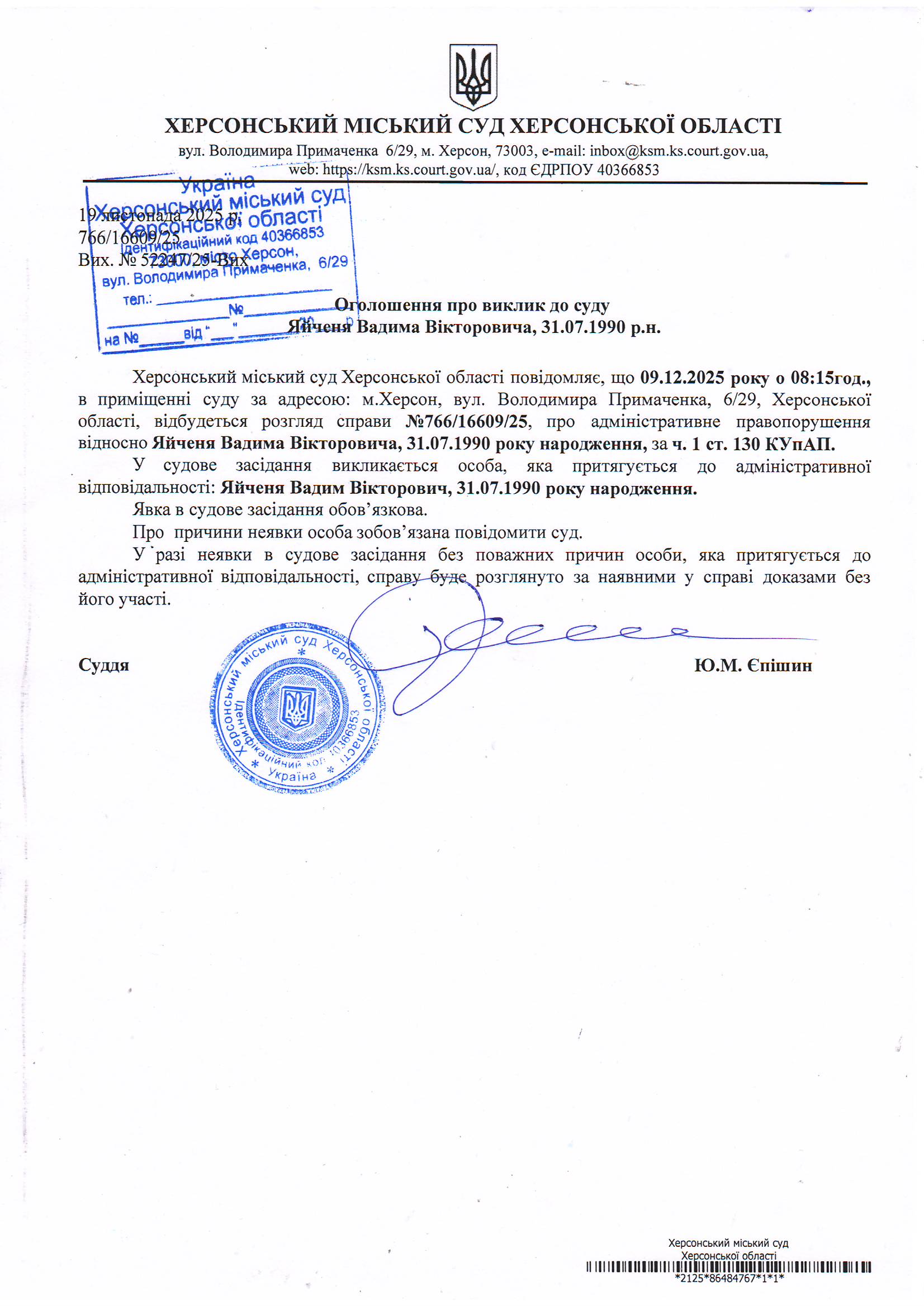 ОГОЛОШЕННЯ ПРО ВИКЛИК ДО СУДУ