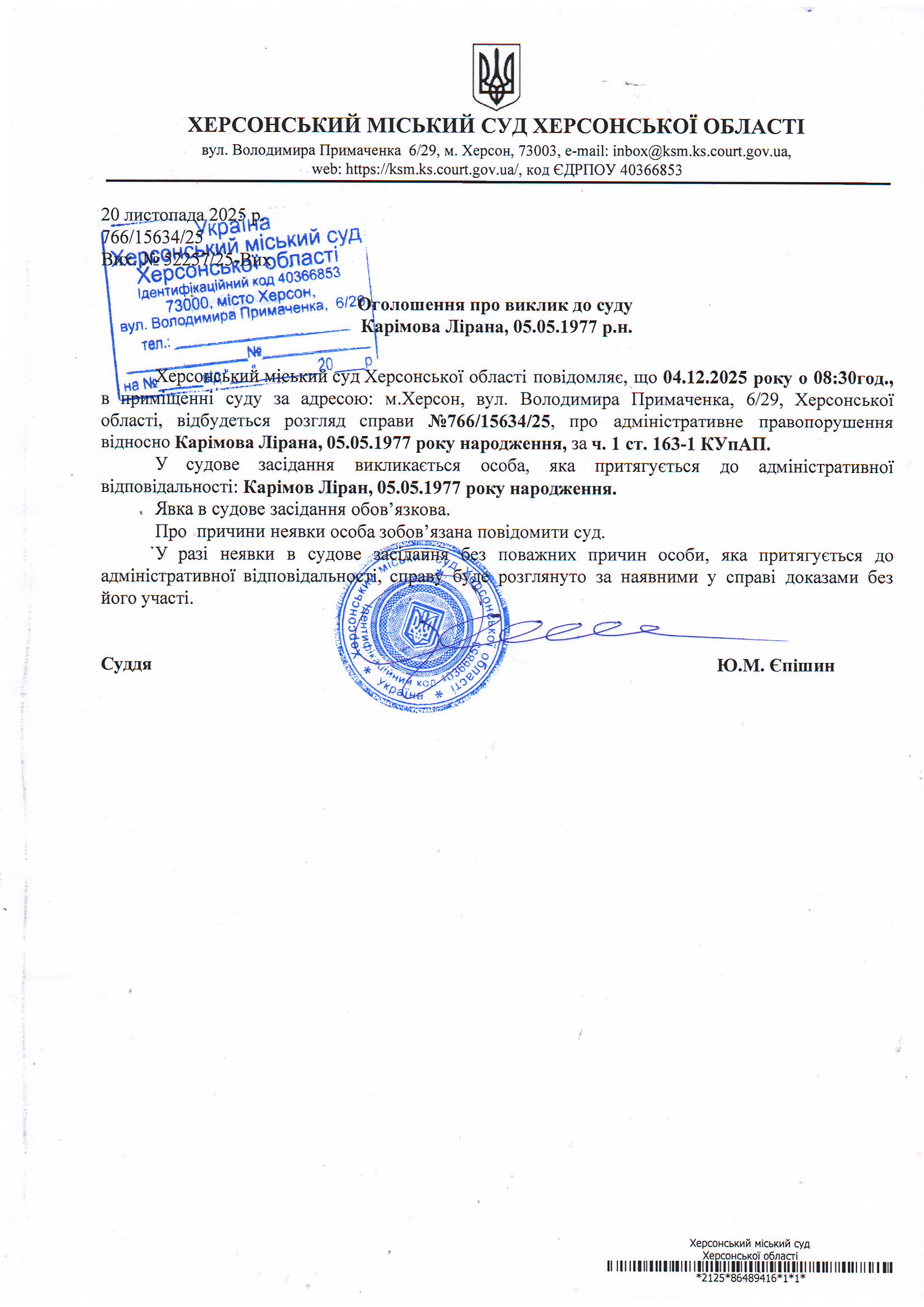 Оголошення про виклик особи в суд та повідомлення про судове рішення