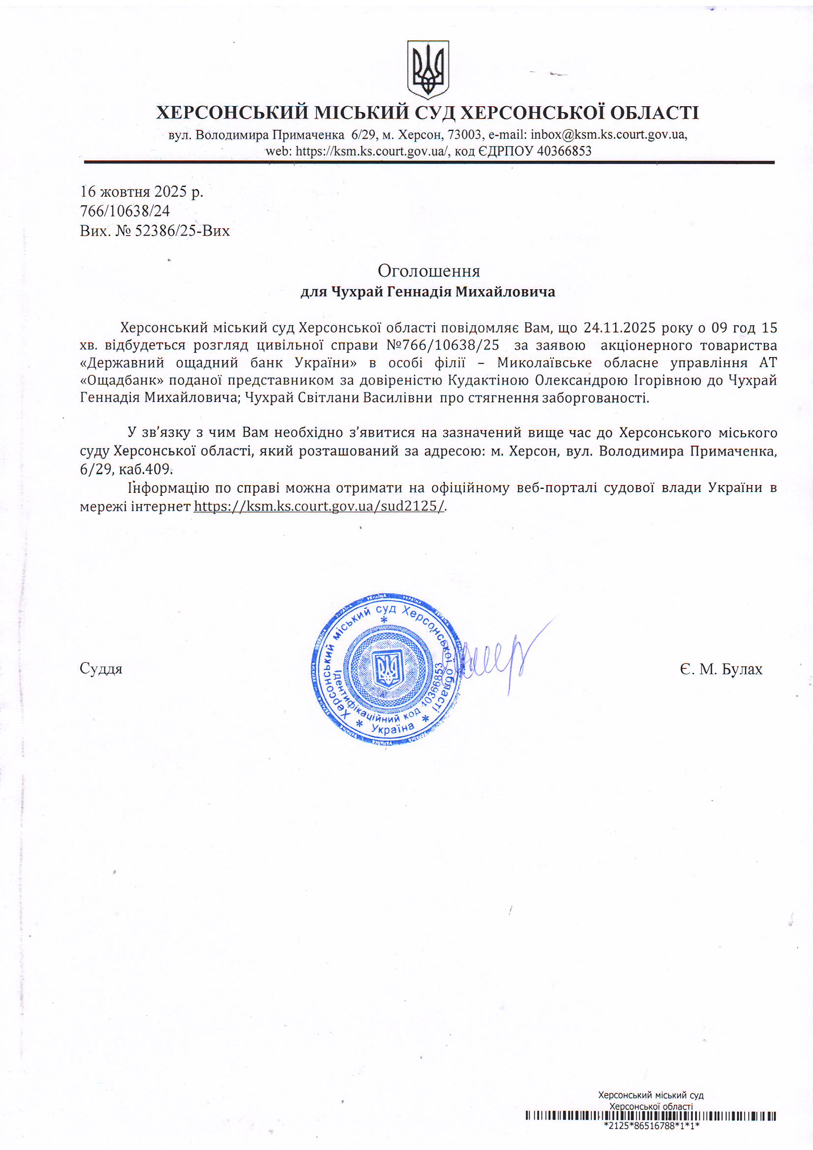 ОГОЛОШЕННЯ ПРО ВИКЛИК ДО СУДУ