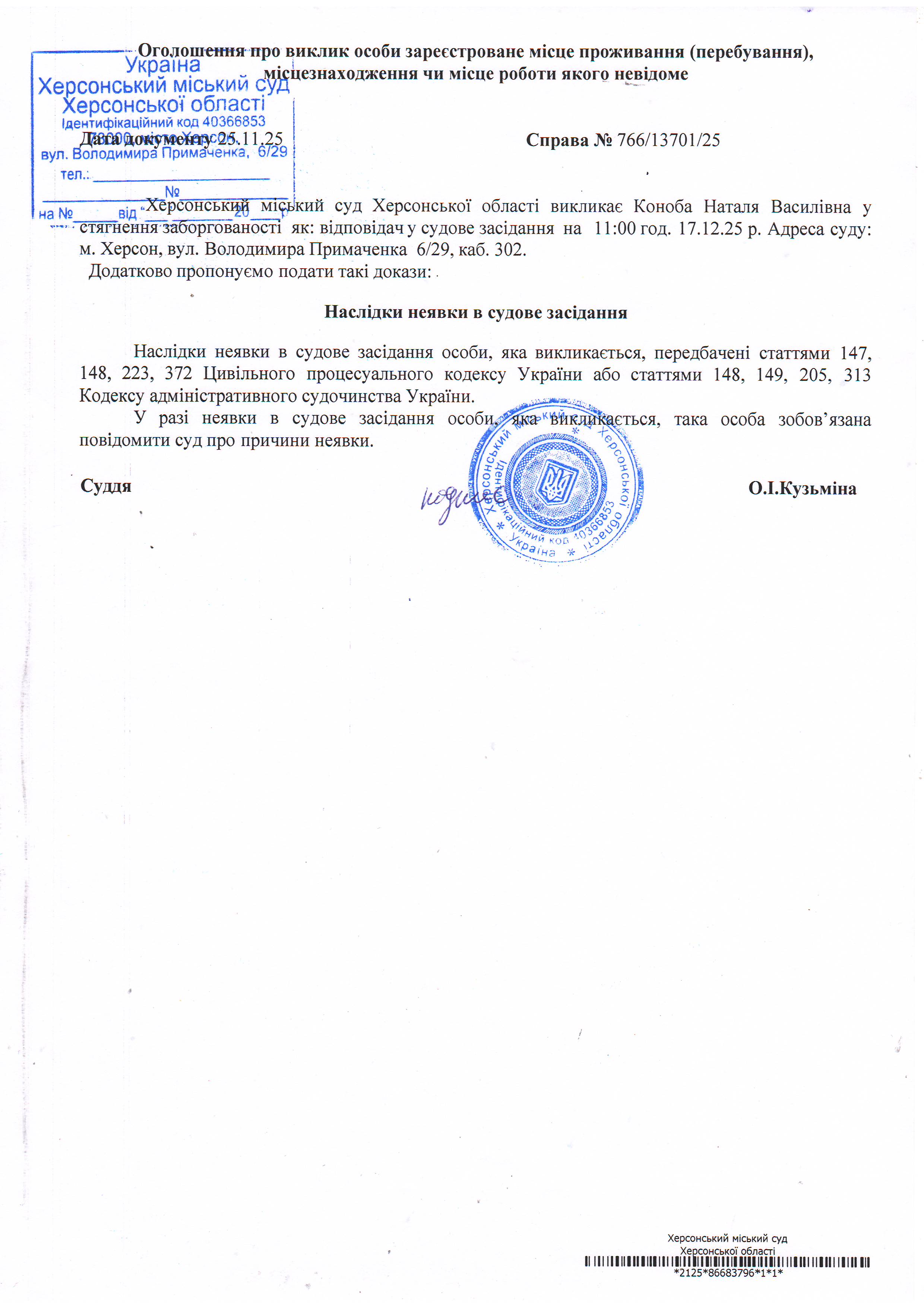 ОГОЛОШЕННЯ ПРО ВИКЛИК ДО СУДУ