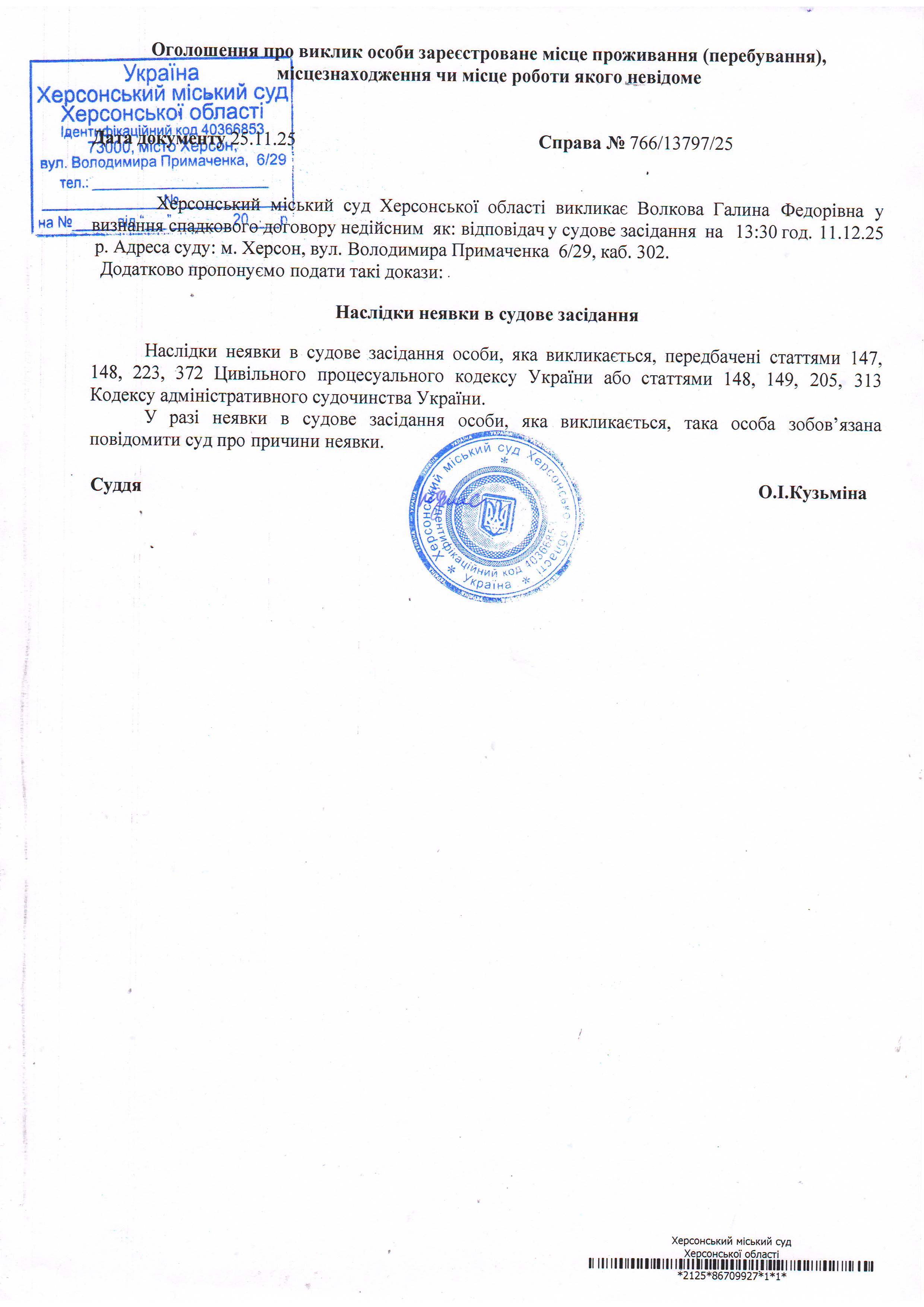 ОГОЛОШЕННЯ ПРО ВИКЛИК ДО СУДУ