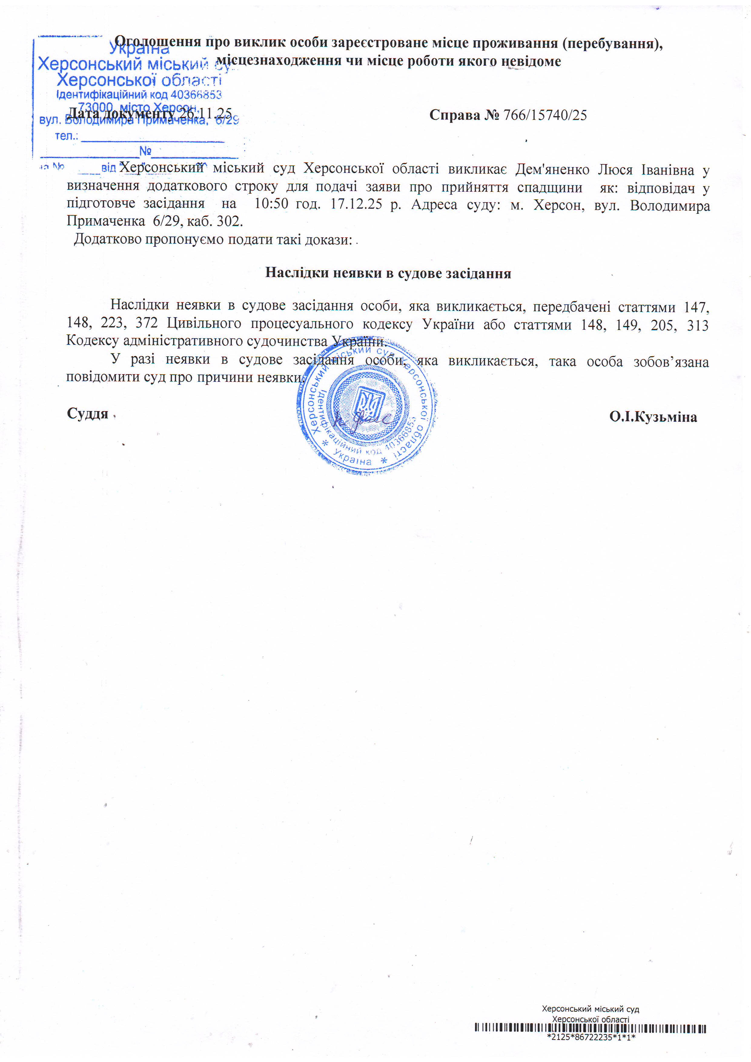 ОГОЛОШЕННЯ ПРО ВИКЛИК ДО СУДУ