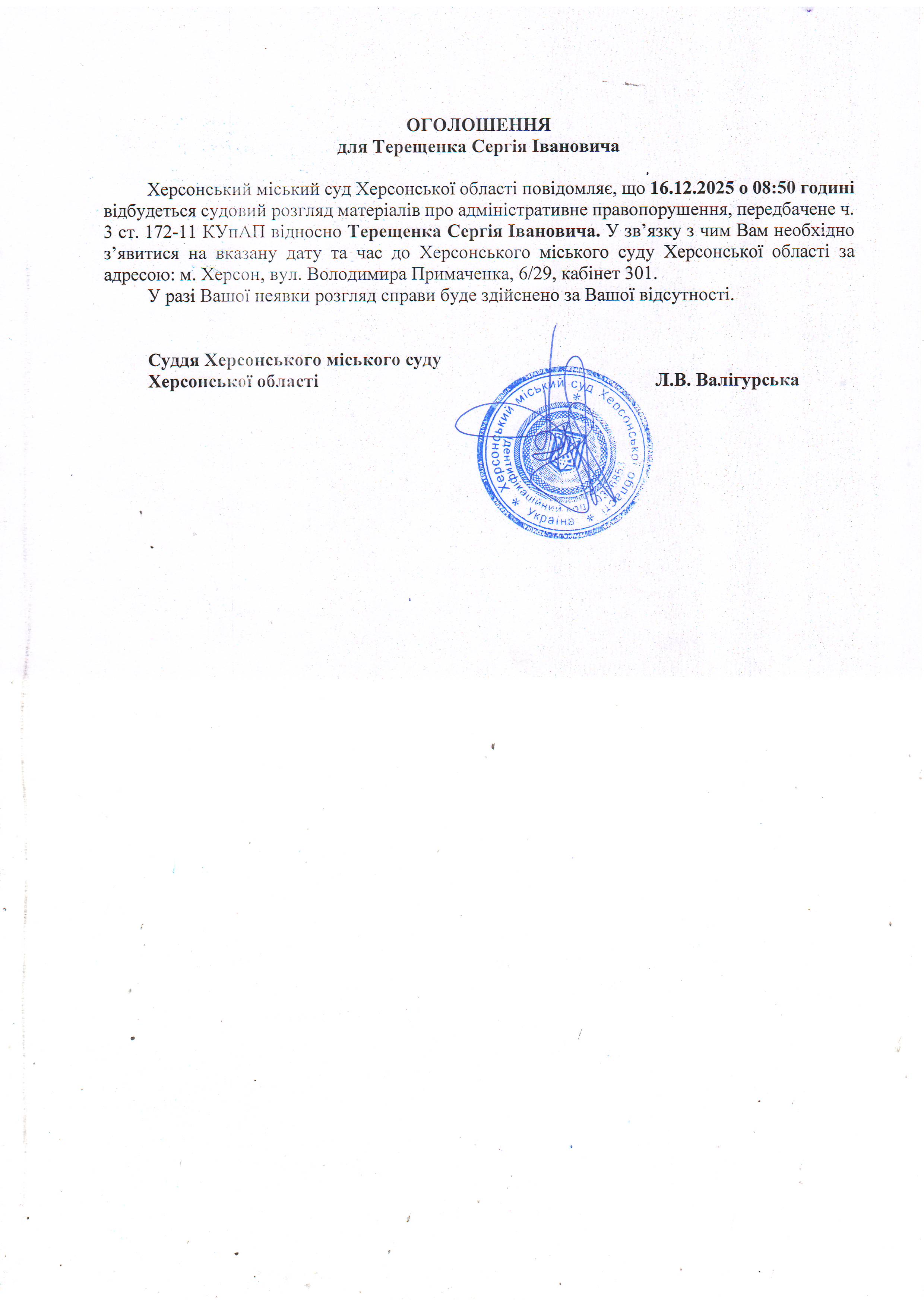 ОГОЛОШЕННЯ ПРО ВИКЛИК ДО СУДУ