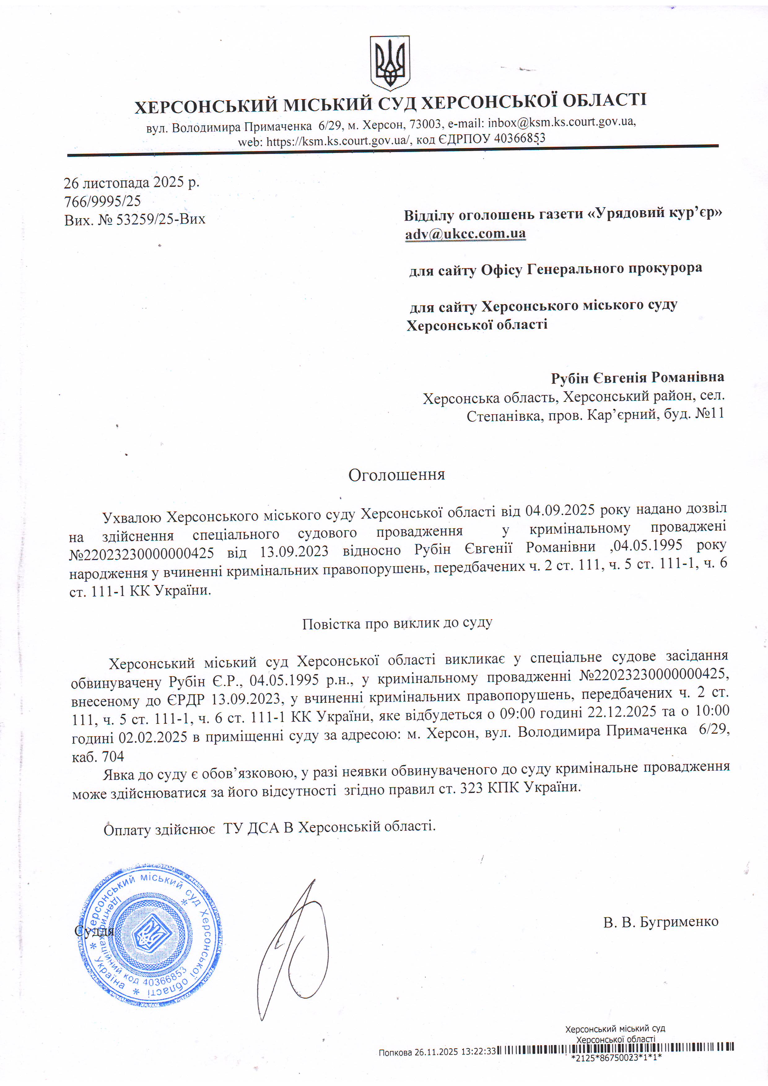 Оголошення про виклик особи в суд та повідомлення про судове рішення