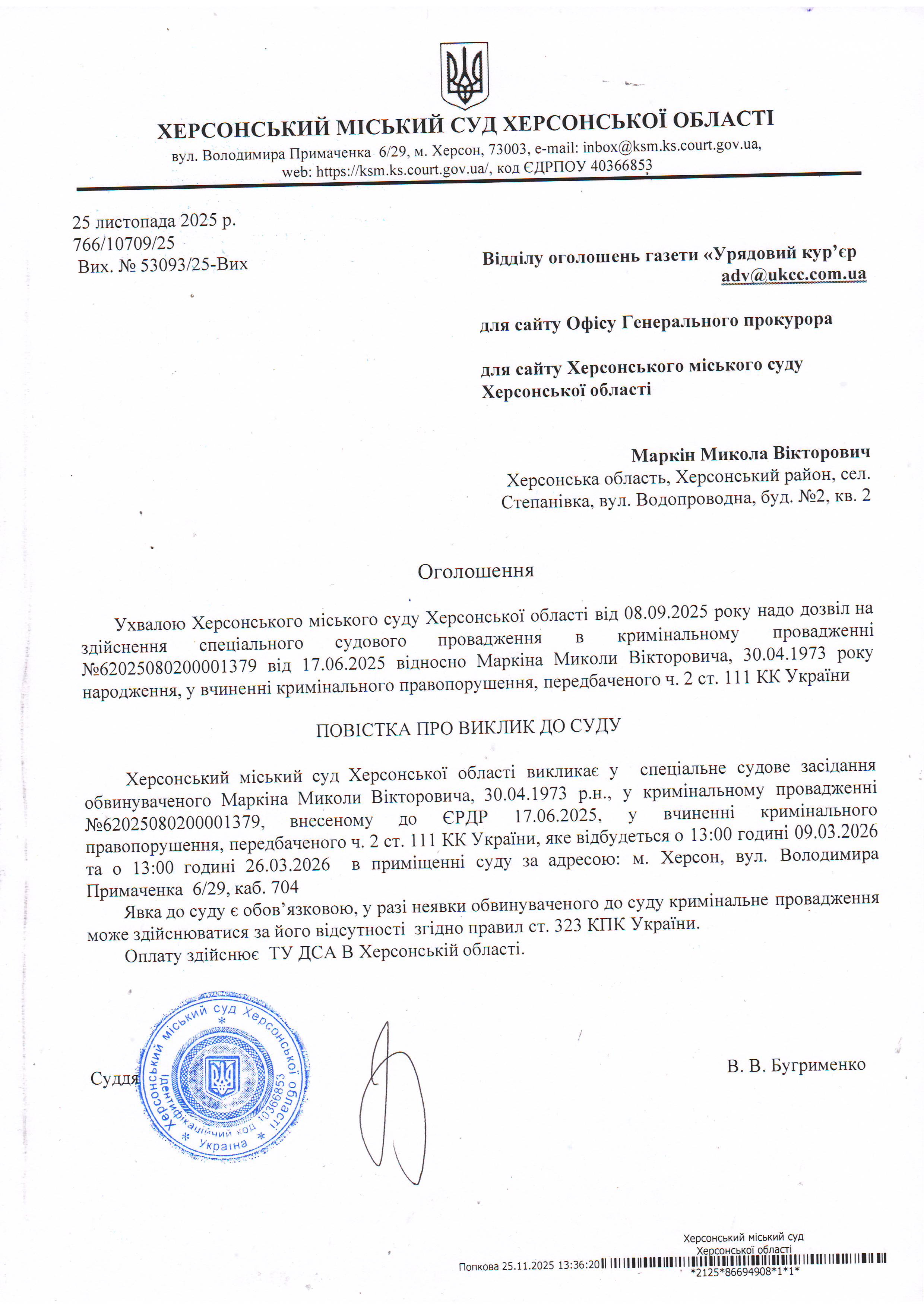 ОГОЛОШЕННЯ ПРО ВИКЛИК ДО СУДУ