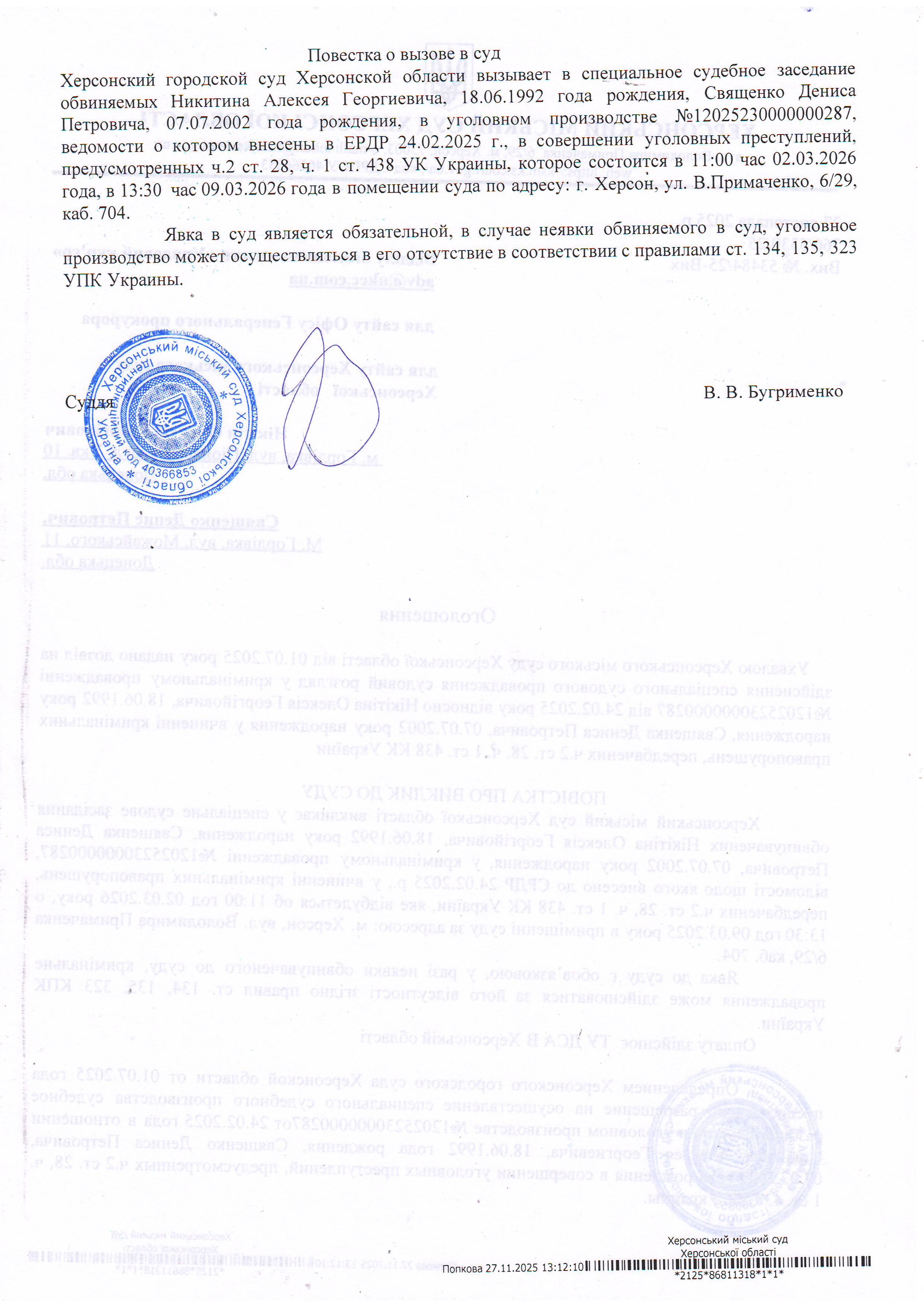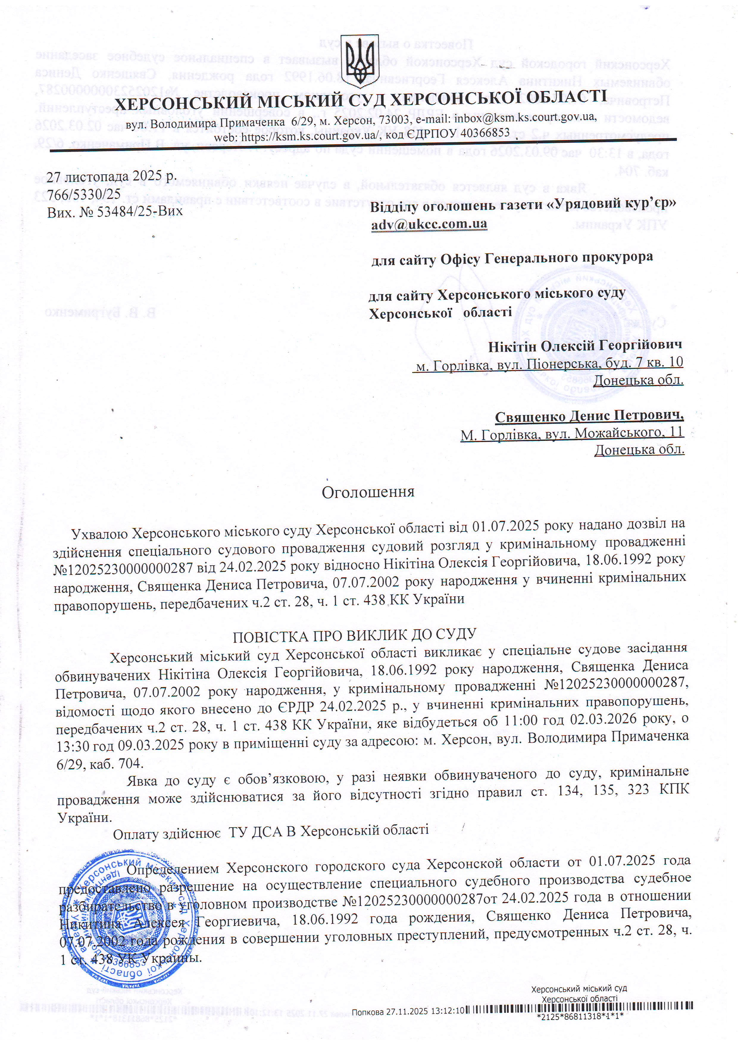 Оголошення для Нікітіна Олексія Георгійовича, Священка Дениса Петровича