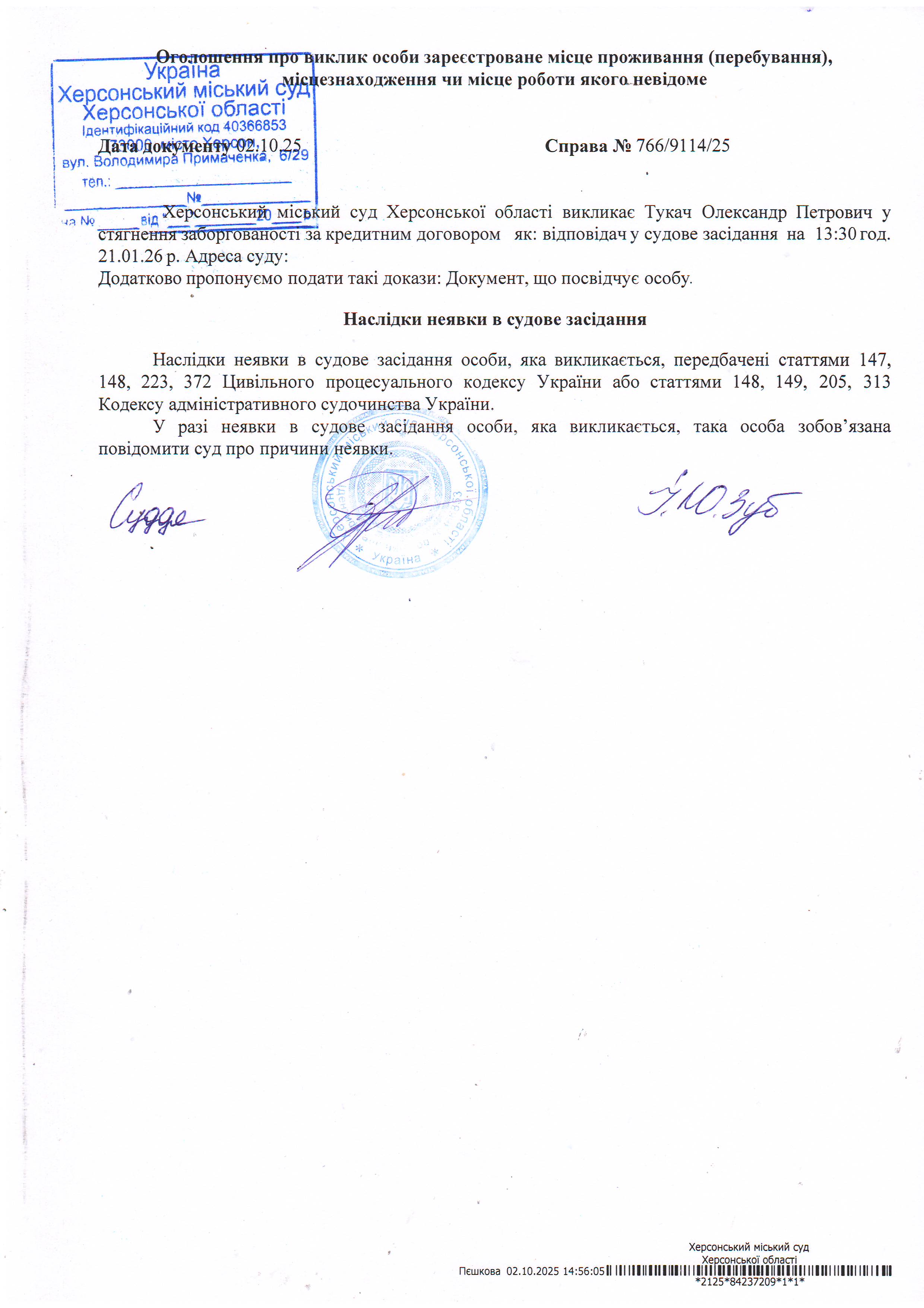 ОГОЛОШЕННЯ ПРО ВИКЛИК ДО СУДУ