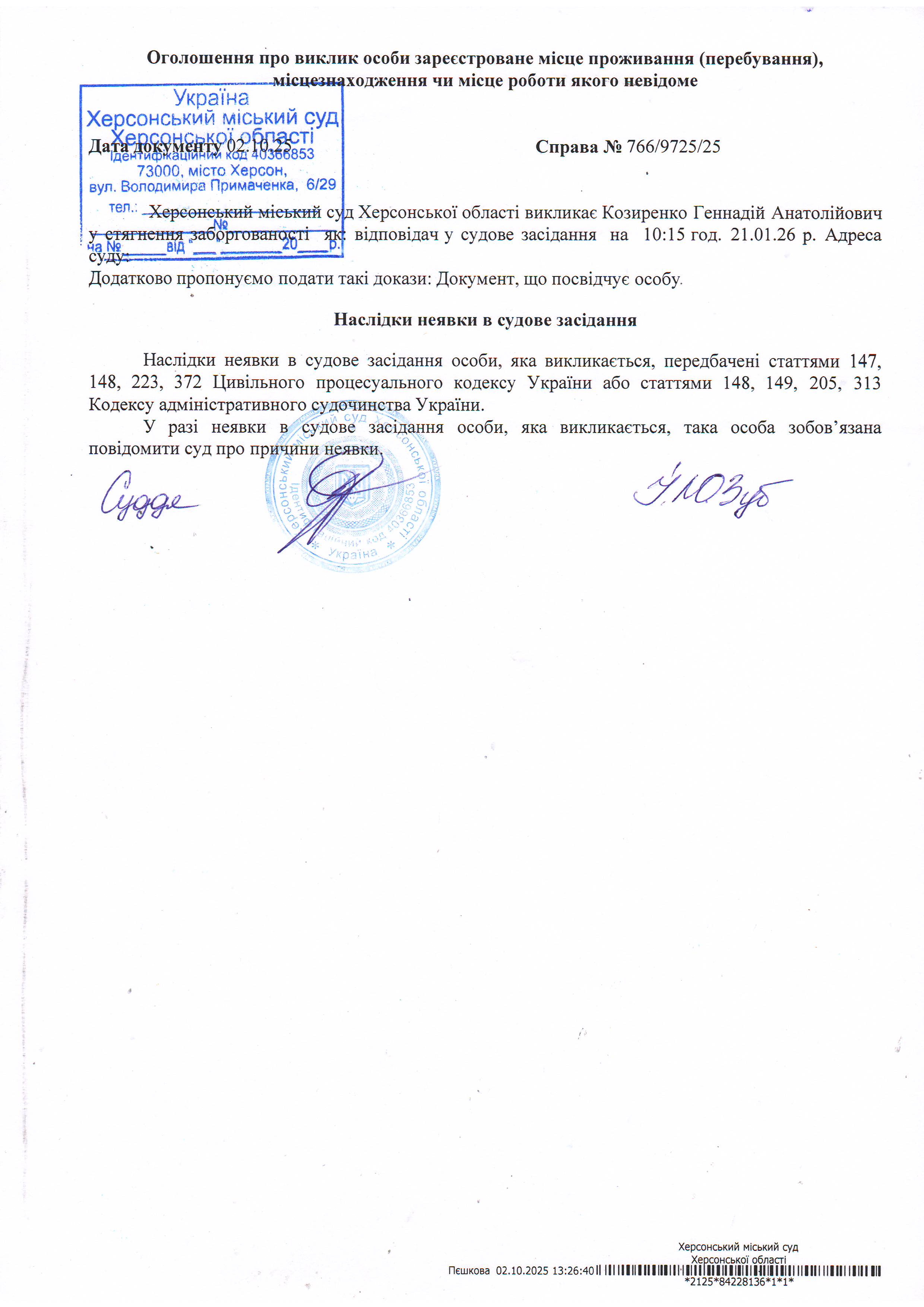 ОГОЛОШЕННЯ ПРО ВИКЛИК ДО СУДУ