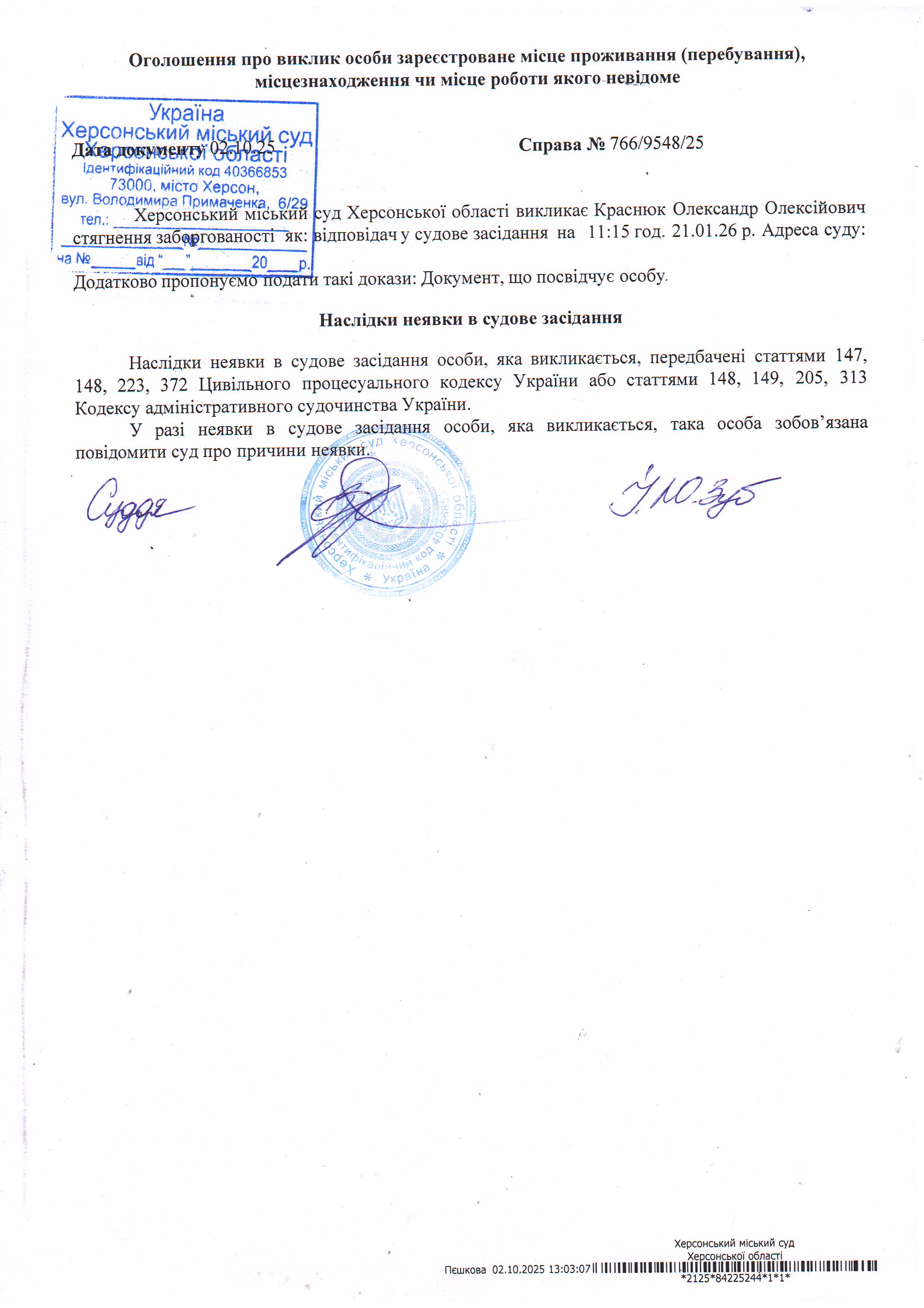 ОГОЛОШЕННЯ ПРО ВИКЛИК ДО СУДУ