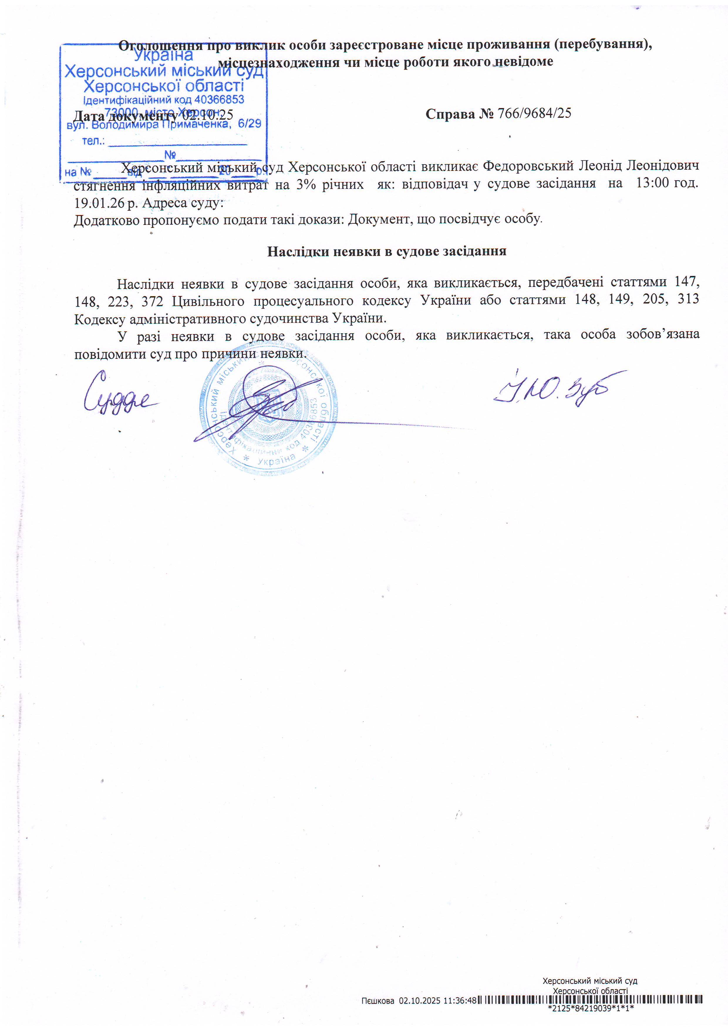 ОГОЛОШЕННЯ ПРО ВИКЛИК ДО СУДУ