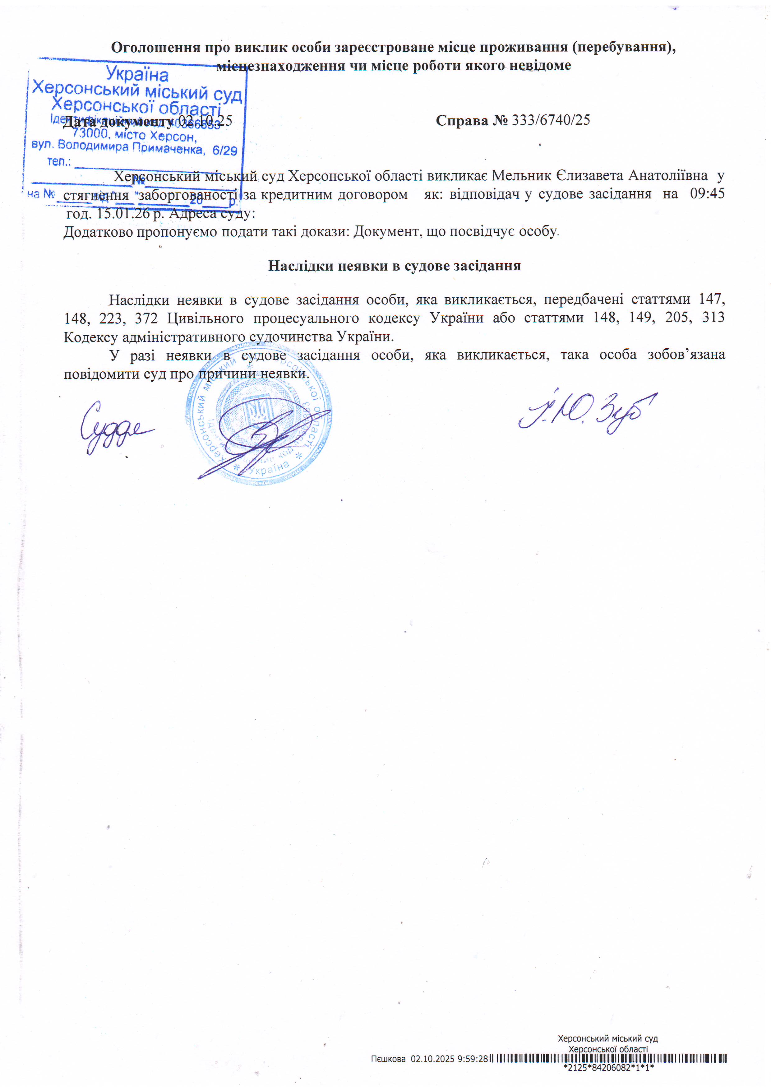 ОГОЛОШЕННЯ ПРО ВИКЛИК ДО СУДУ