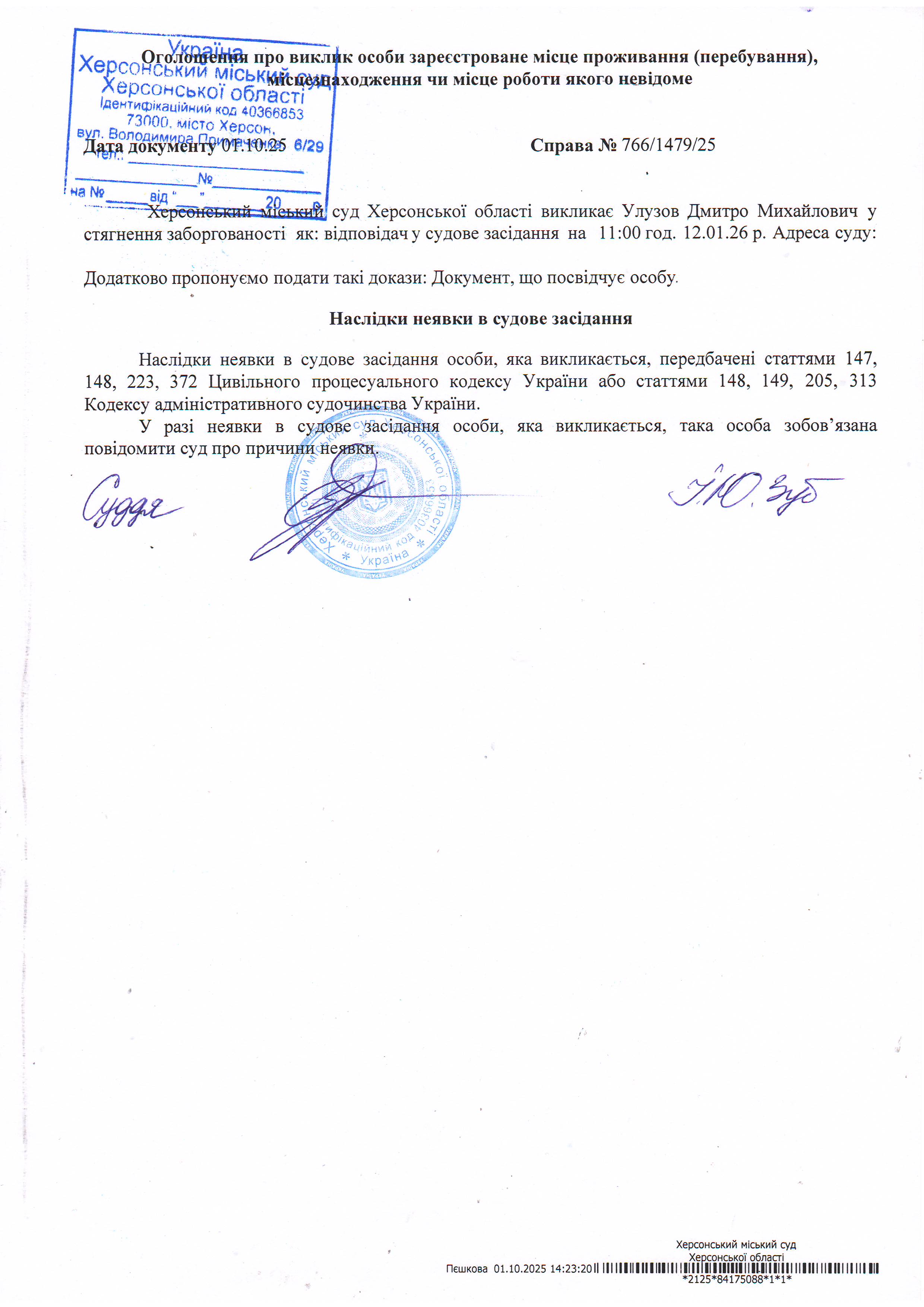 Оголошення про виклик особи в суд та повідомлення про судове рішення