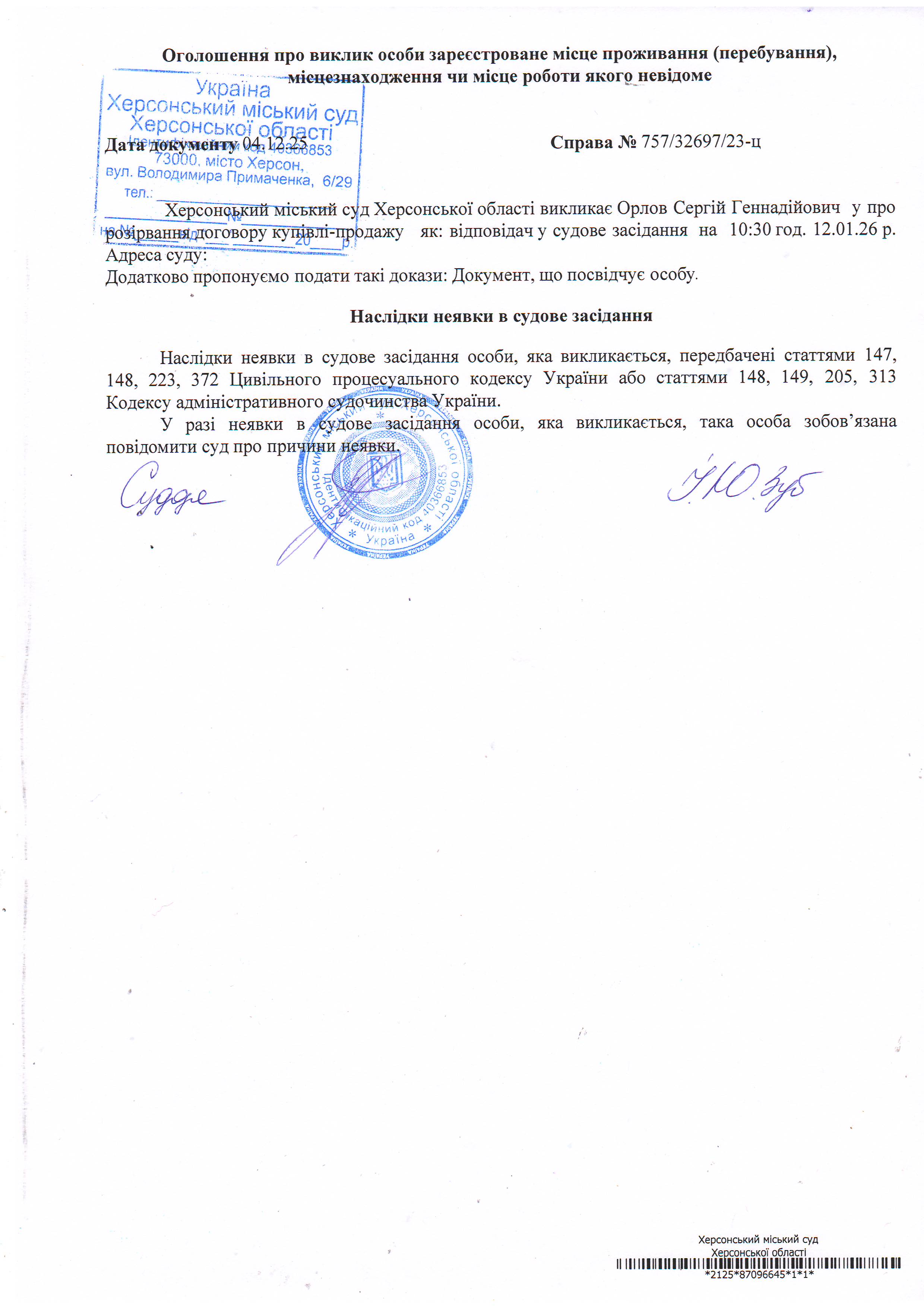 ОГОЛОШЕННЯ ПРО ВИКЛИК ДО СУДУ