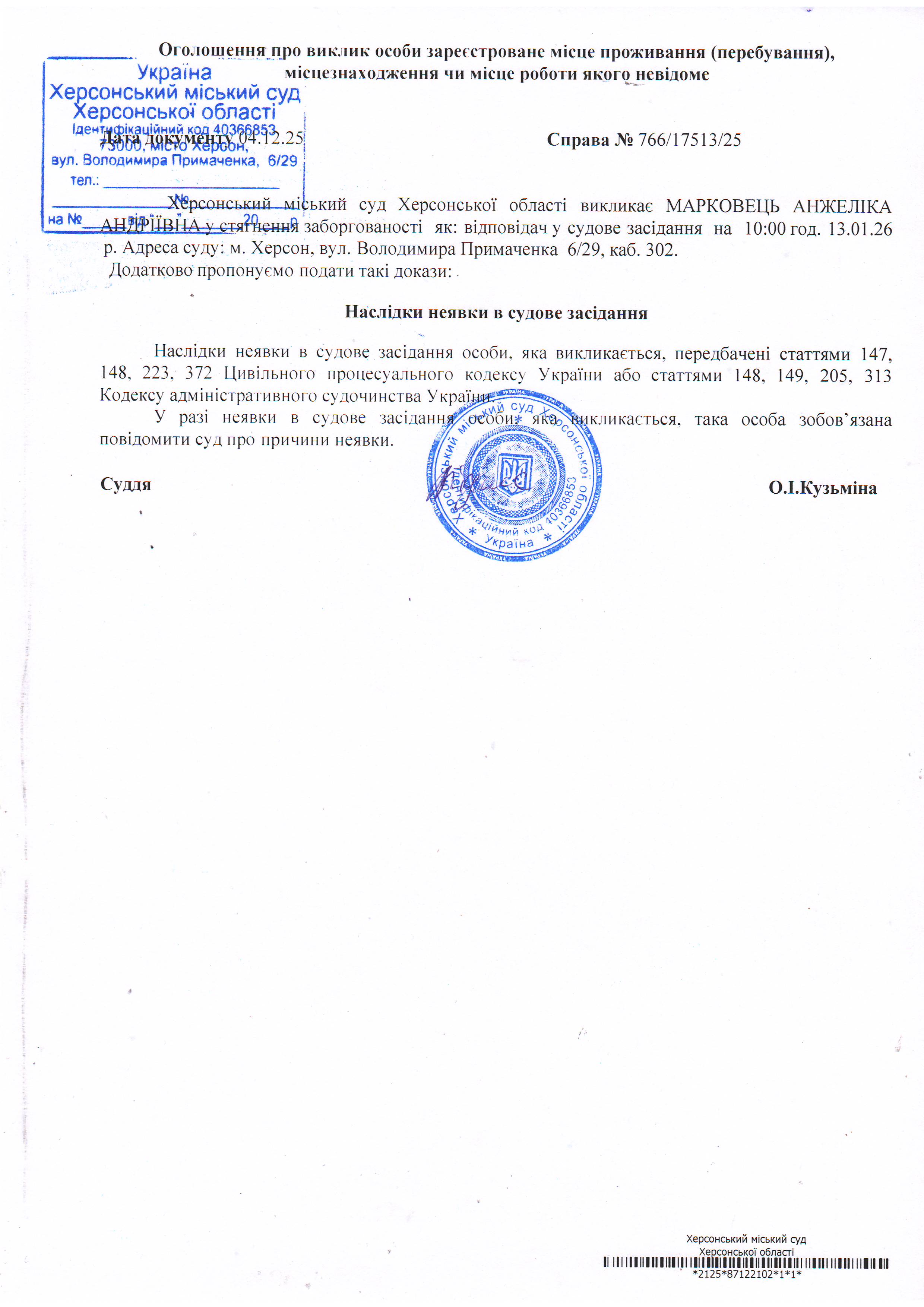 ОГОЛОШЕННЯ ПРО ВИКЛИК ДО СУДУ