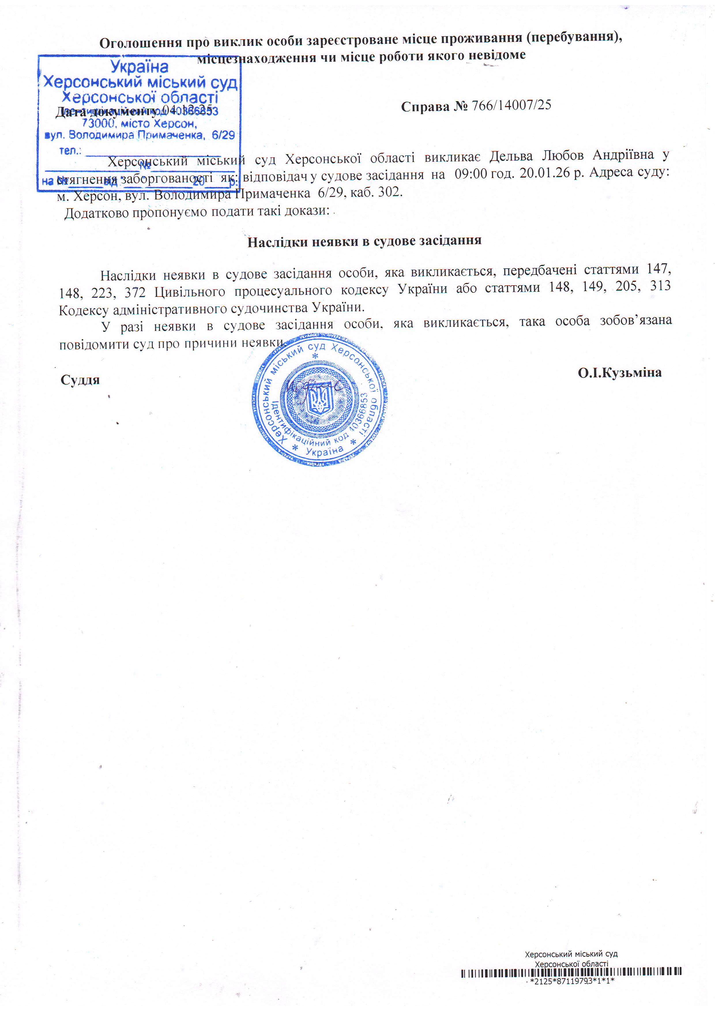 ОГОЛОШЕННЯ ПРО ВИКЛИК ДО СУДУ