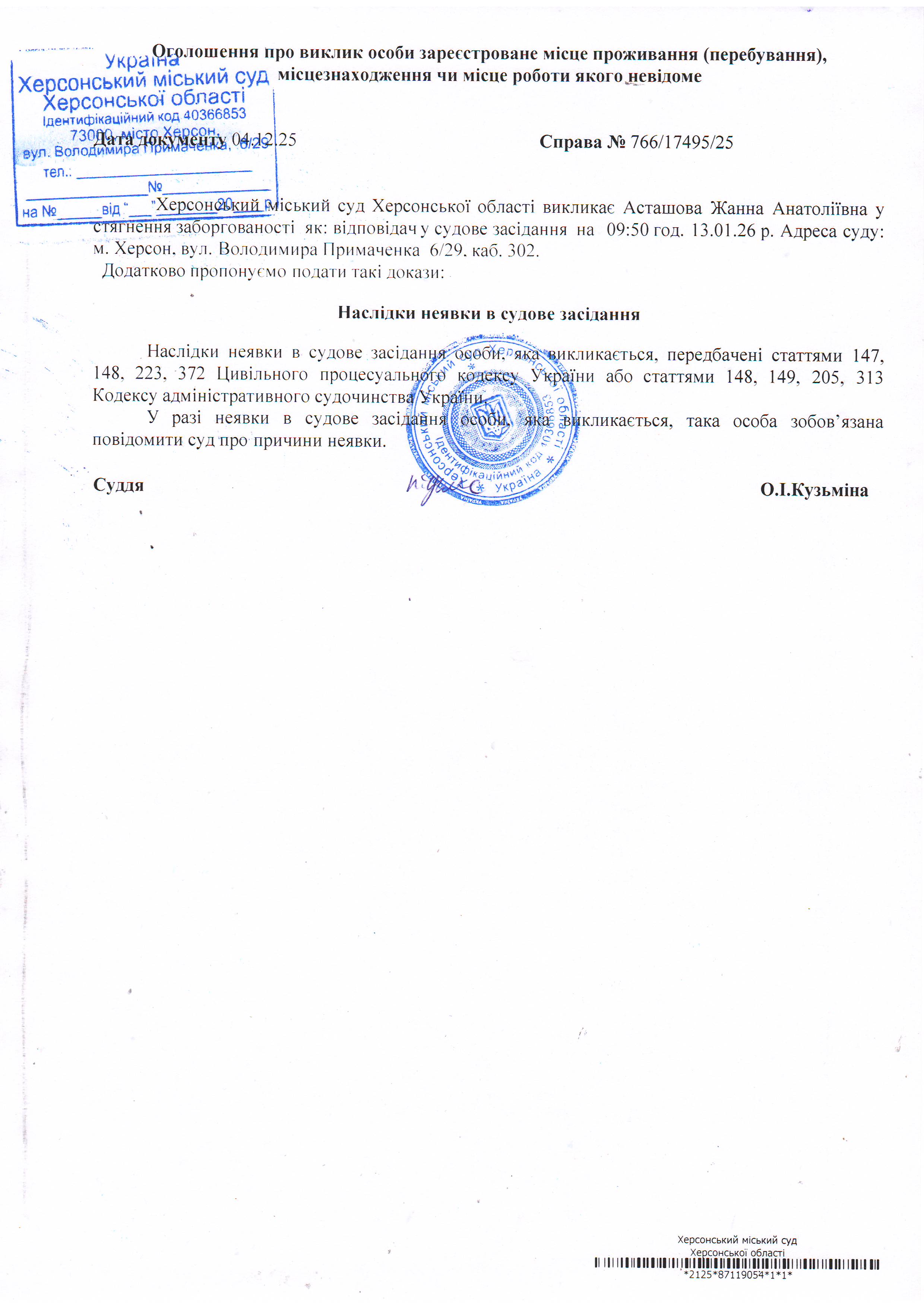 ОГОЛОШЕННЯ ПРО ВИКЛИК ДО СУДУ