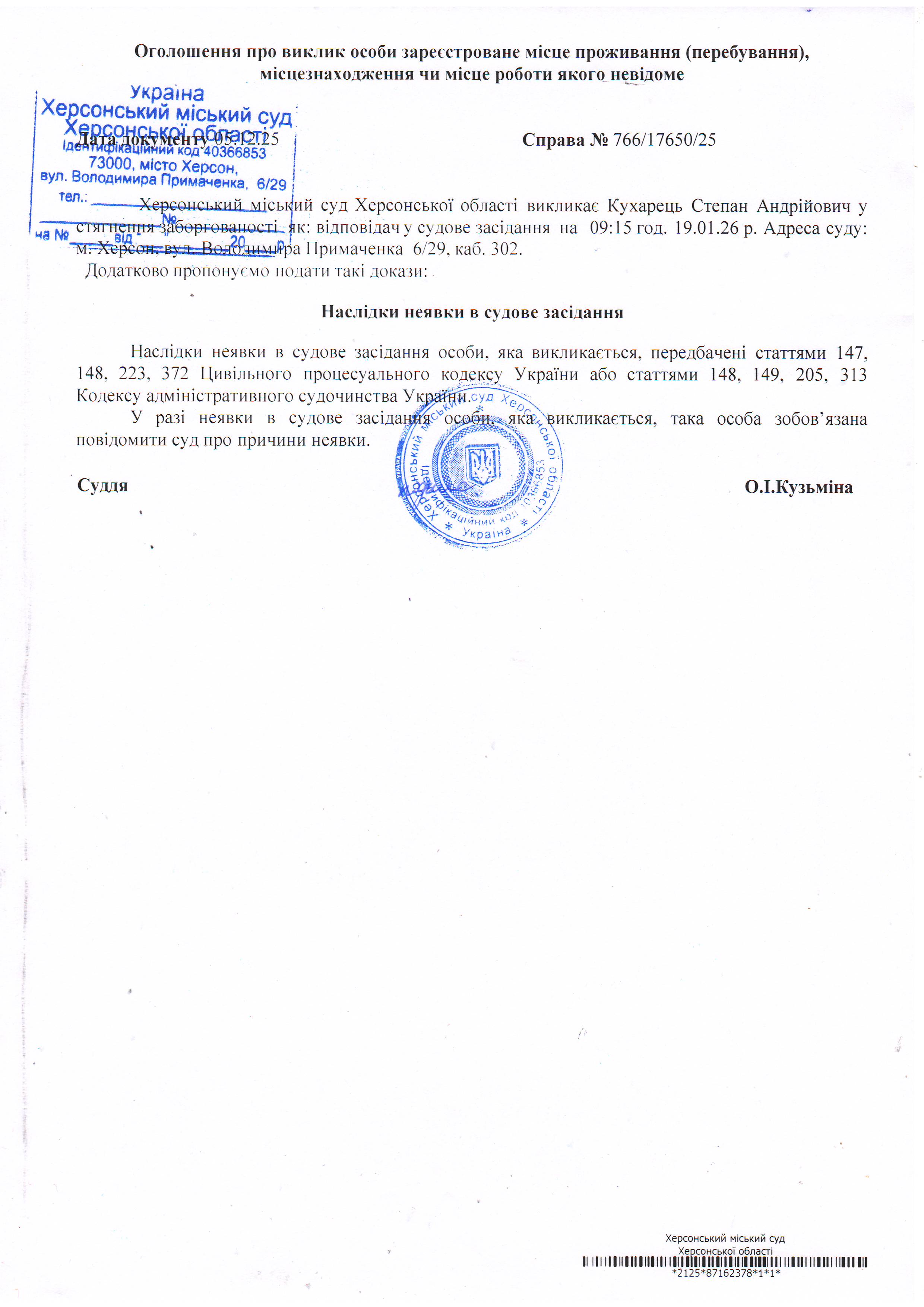 ОГОЛОШЕННЯ ПРО ВИКЛИК ДО СУДУ